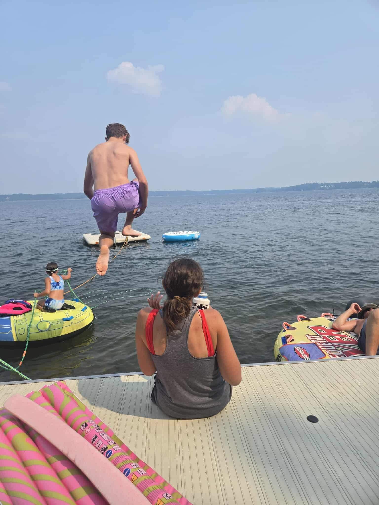 We have over 100 feet of sandy shoreline with a gradual slope down to the lake. There is a large dock available for use. We have 4 Kayak’s, 2 Paddleboards and a swim platform for you to enjoy. The lake is an excellent swimming lake with a sandy bottom and no weeds. The lake depth at the end of the dock is about 5 feet and gradually gets deeper.