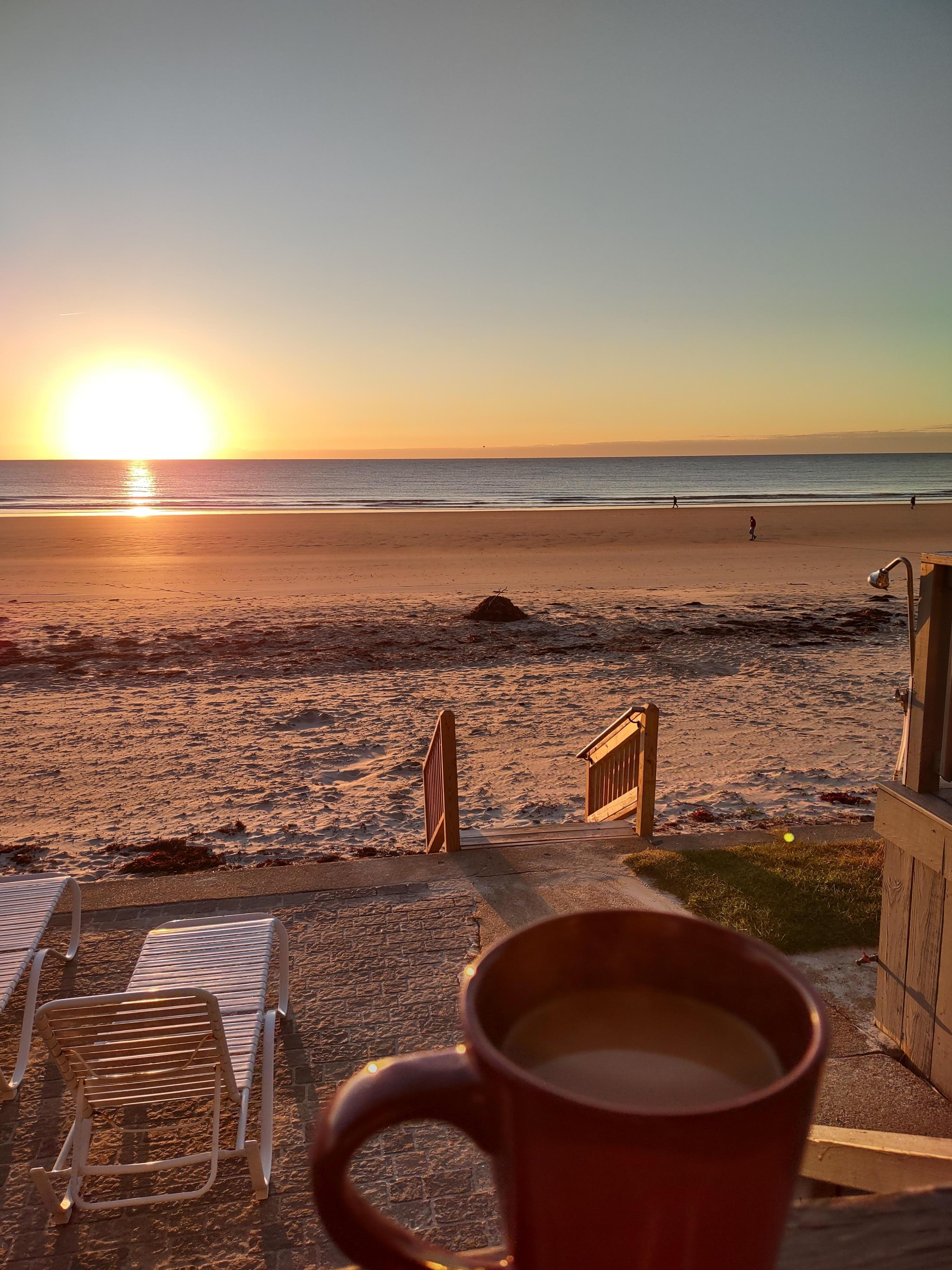 Our home is right on Wells beach. Wake up every morning with a 180 degree panoramic ocean view from your deck and living room. This home is the ultimate in beach convenience. Wake up to sunrises over the ocean and enjoy family fun on the deck as you watch the sun set. A Well stocked kitchen with all the utensils allows for eating in and the central location of this home allows for quick access to all the great local restaurants. Wells is getting more and more popular each summer. The number of homes that offer this degree of beach access and ocean views is shrinking every year (as owners convert rental homes to private homes). Treat yourself to the ultimate Wells beach experience - Stay right on the beach!! Within our recently updated circa 1924 home, this 2 bedroom unit is adjoined by a 3 bedroom unit (VRBO #2278234) on the opposite side of the home. If you are looking to vacation with family/friends this setup provides for both close proximity and privacy. We purchased this home in 2021 - that is why there are only a few reviews as of yet. We own another home on Atlantic Ave that has double digit highly positive VRBO reviews (VRBO #3912788). You only live once, why not treat yourself to one of the best locations Wells Beach has to offer! Enjoy the panoramic ocean sunrise with your coffee!! (All stays contingent on receipt of signed rental agreement)