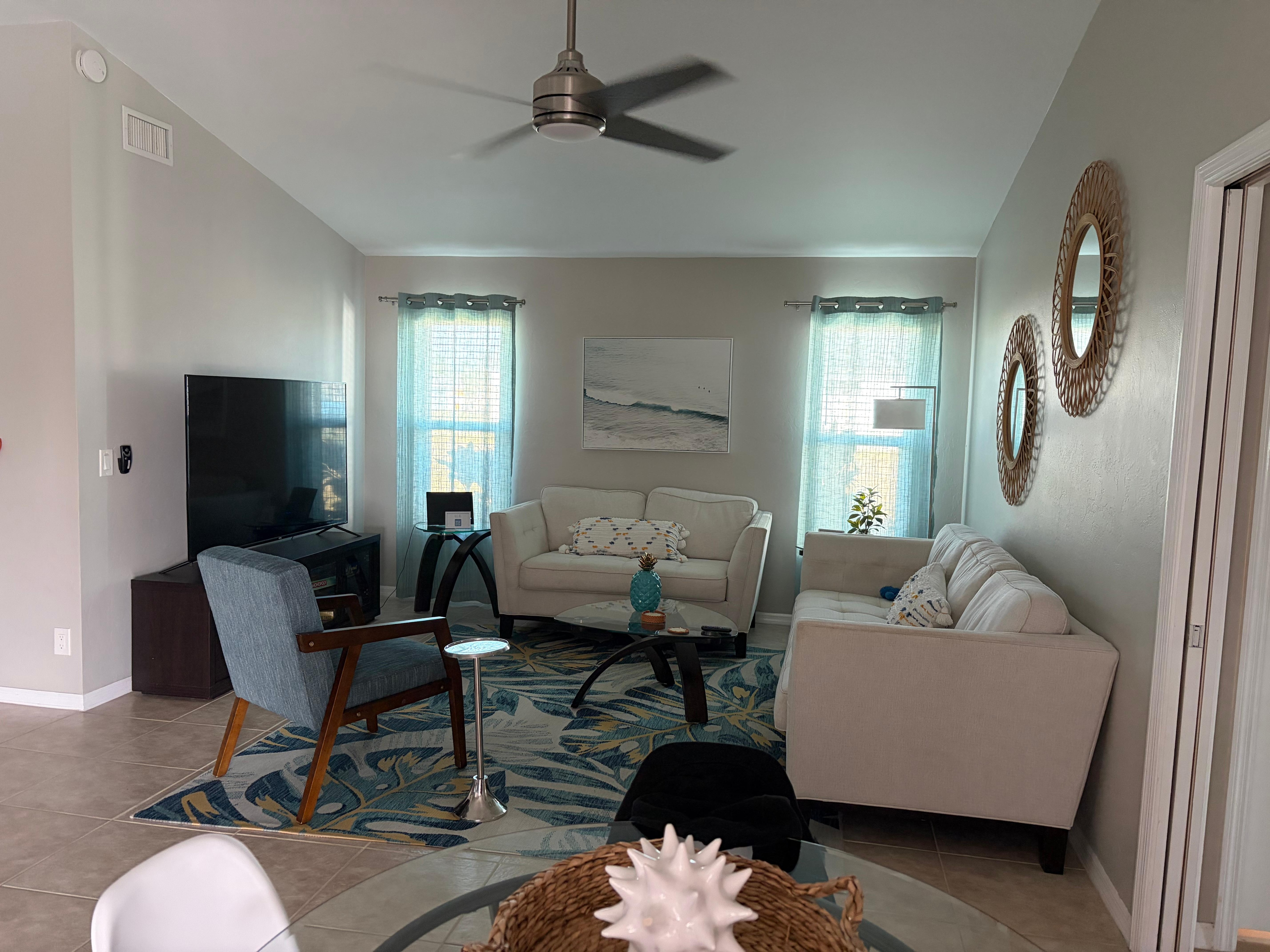 The inside of the home was redone and refurnished in 2021 to give Palms Over Water its modern, coastal contemporary vibe. A sense of Florida relaxation will welcome you as soon as you enter the property. And if relaxing for you involves staying connected online or watching TV, we have you covered with high-speed fiber optic internet (750 mbps) & 4 Smart TV's...including a 70" Smart TV and outdoor TV on the lanai.
