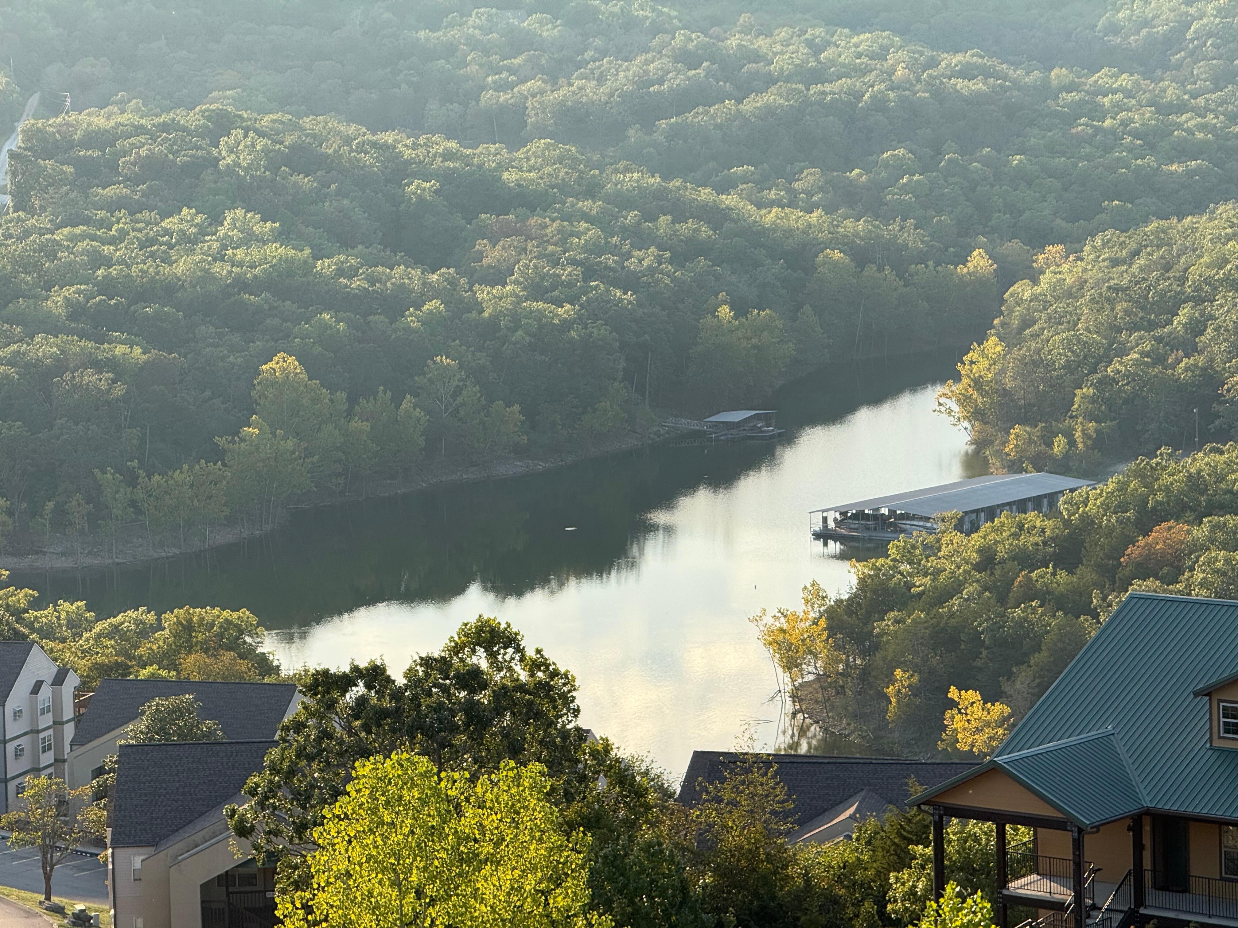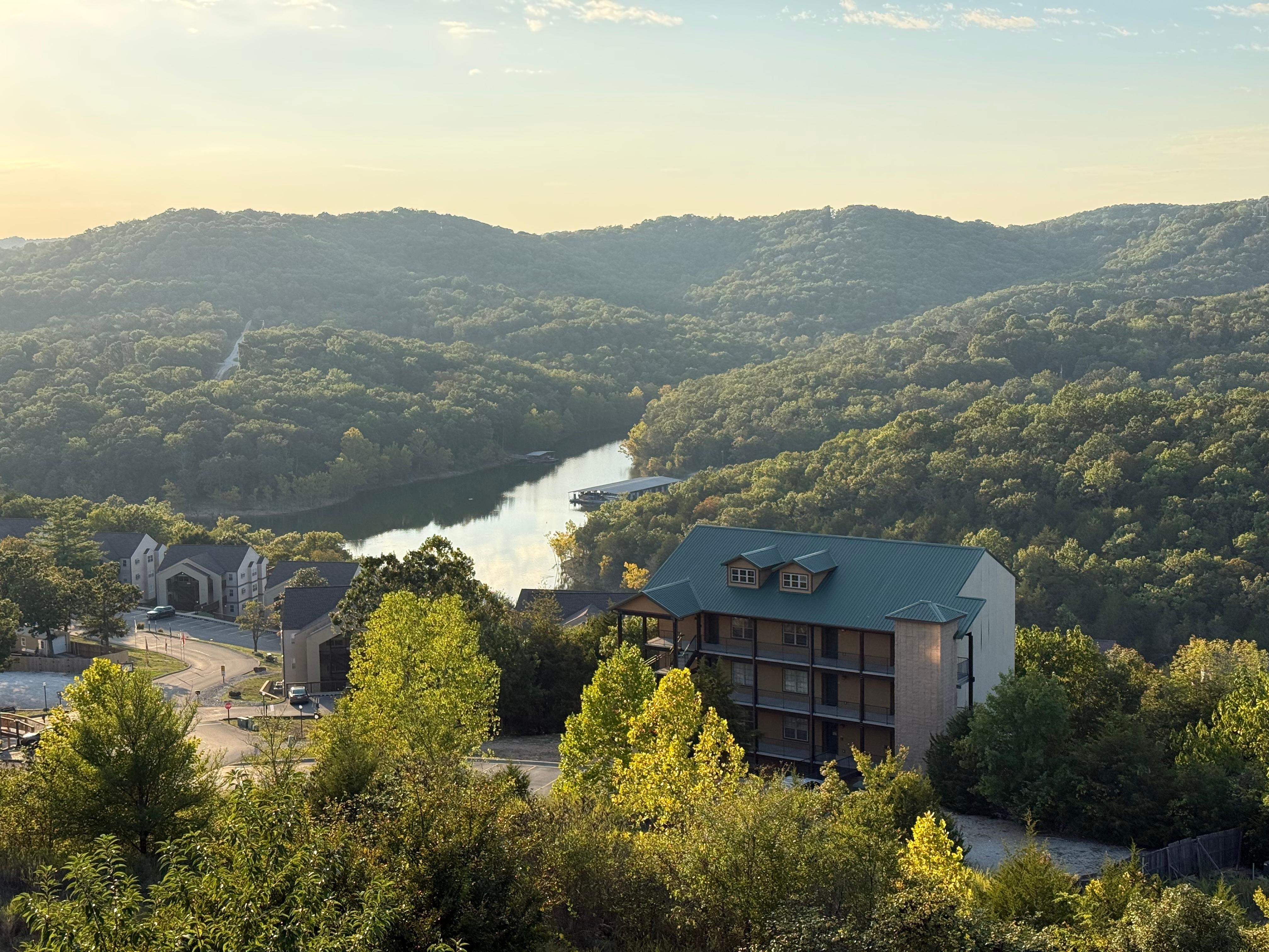 This 2 bed and 2 bath condo is perfect for your family of up to 8. wanting a great vacation home next to Americas most loved theme park! Enjoy your private top floor balcony while listening to boats on the water, the train whistles, and the roller coaster sounds from Silver Dollar City. The 180-degree views of Table Rock Lake, SDC, and Ozark mountains are just one of the amazing things about this property. The grilling area, fire pit, and outdoor pool (open Memorial Day through Labor Day) with scenic views, make this one of our favorite places to hang out. A fully functional kitchen and necessary cooking supplies. So many updates to list but a few items are: carpeting replaced in the fall of 2022, all the hardwood flooring replaced in the Spring of 2023, and new sleeper sofa, sitting chair, and the addition of a small desk in the winter of 2023. We have tried to think of everything you might need while on vacation, and have it at your disposal.