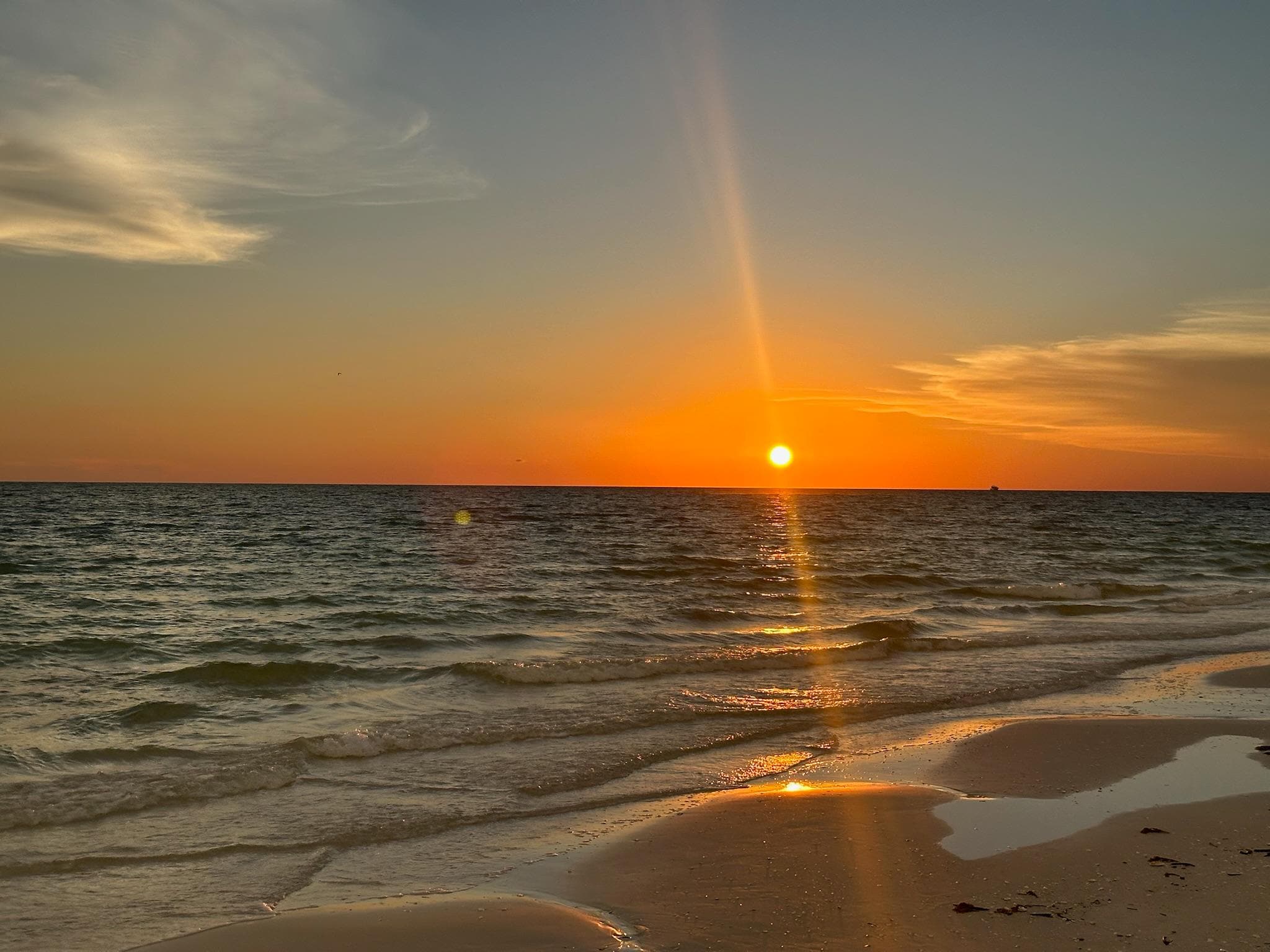 The dining area sits below a beautiful chandelier that you have to see in person to truly appreciate. While you dine you'll have your choice of an ocean view out the back or an expansive Marco Island city view out the wall of windows!