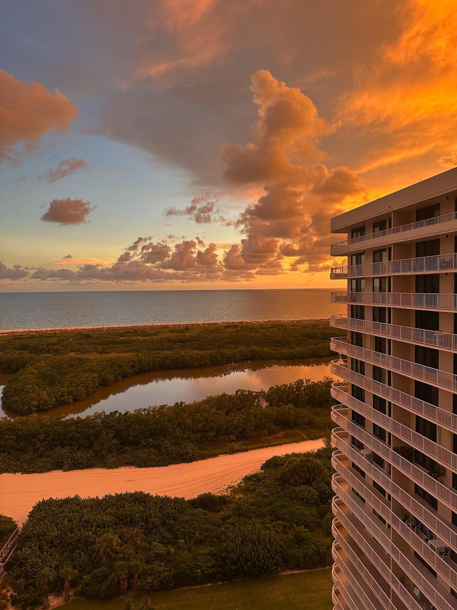 This is a true ocean front stunner 🤩 with unmatched 17th floor end unit views. The entire rear of the unit is sliding glass doors that open to an expansive wrap around balcony overlooking the ocean on one side and Marco Island the city on the other. Being an end unit, on the east side of the building you also get a wall of windows with a sweeping full view of Marco Island. Off the kitchen and facing north & northeast is a separate second balcony overlooking a bay and providing an even more complete Marco Island perspective. You enter the unit via an outdoor catwalk with north and northwest views. This unit comes as close to offering you a full 360 degree panorama of Marco as you could ever hope to find, you'll miss nothing!