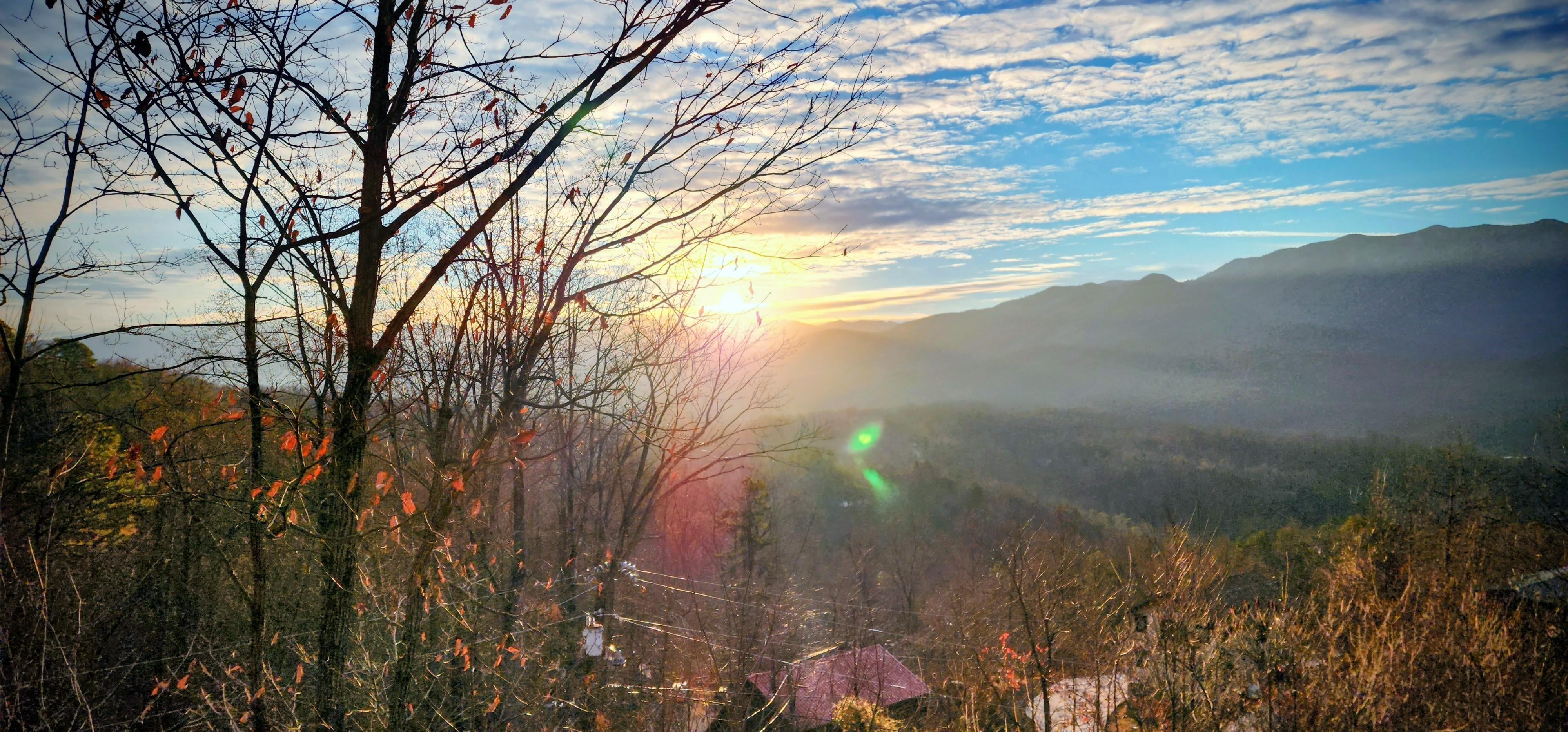 Mountain Hideaway offers a unique design, that gives a "Mountain Feel" with a fantastic view of The Great Smoky Mountains. Directly view the highest peak, Mount Leconte, from deck!