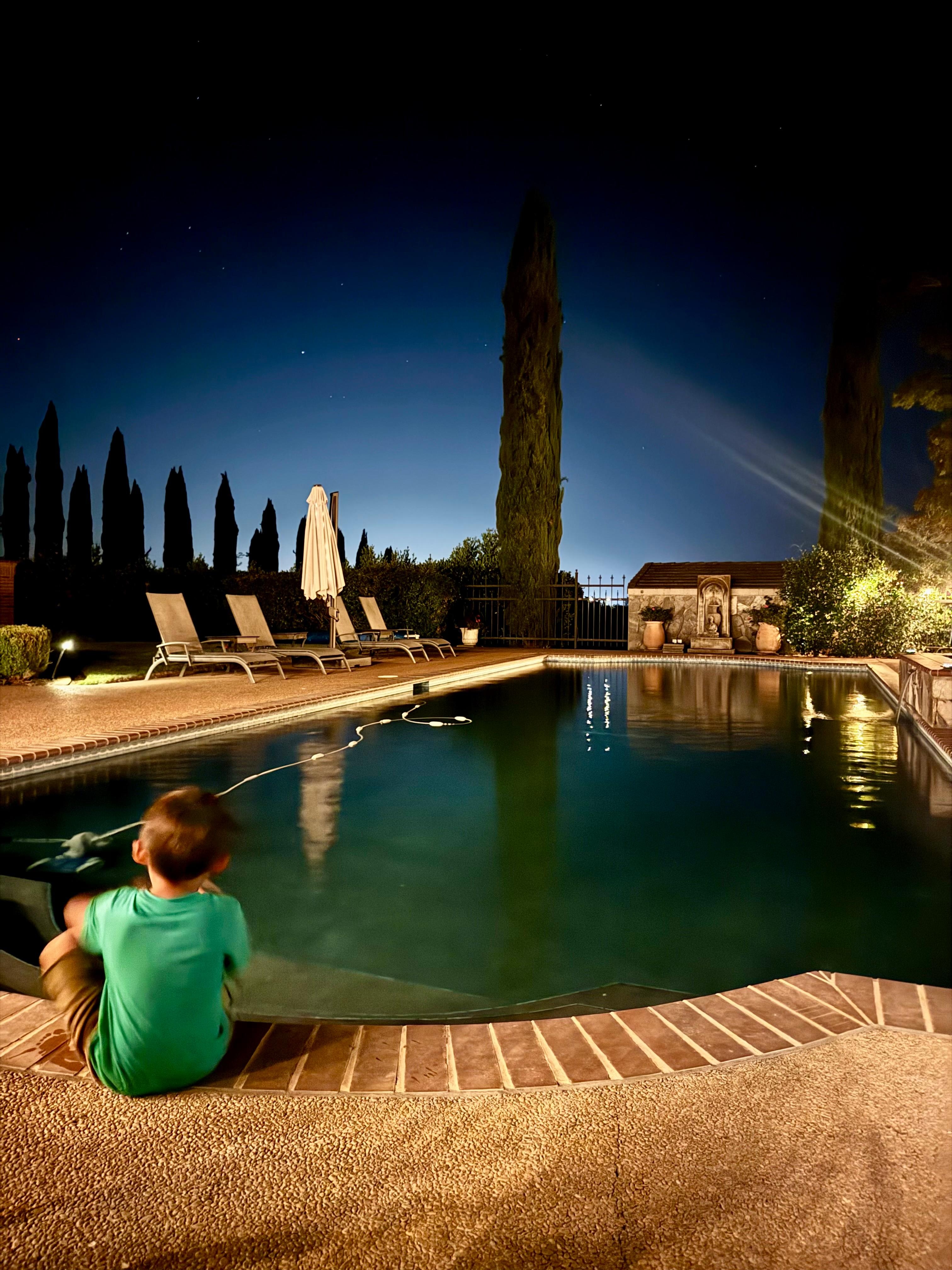 Your own resort outdoors will be hard to leave once you experience the large private pool, hot tub, grills, outdoor refrigerator and a spacious patio with ample seating and dining tables. We have chaise lounges, pool towels, water fountain feature, and grassy areas for kids to play all inside the gated veranda. Beautiful landscaping and flowers surround you here and an impressive olive grove of 20 trees awaits on the other side of the gate. We love to have a cup of coffee in the morning sitting at the table in the olive grove overlooking the vineyards and listening to the birds chirping. This is also a wonderful area for an outdoor lunch or cocktail reception. There is also a fire pit perched on the edge of the hill providing yet another spot for gathering. And feel free to enjoy fruit from one of our trees which include orange, blood orange, grapefruit, peach, and lemon! We have a large parking area outside as well as a three car garage. Open the far-right garage bay and use the exercise equipment there to experience an indoor-outdoor work-out. We have yoga mats, exercise mat, upright rower, weights, kettlebell, stability ball. And of course, the vineyards are magical. We have close to ten acres of vineyard which surround the house on all sides. Our winemaker can arrange a special tasting or walk through the vineyard with you if you’d like to learn more while you are there.