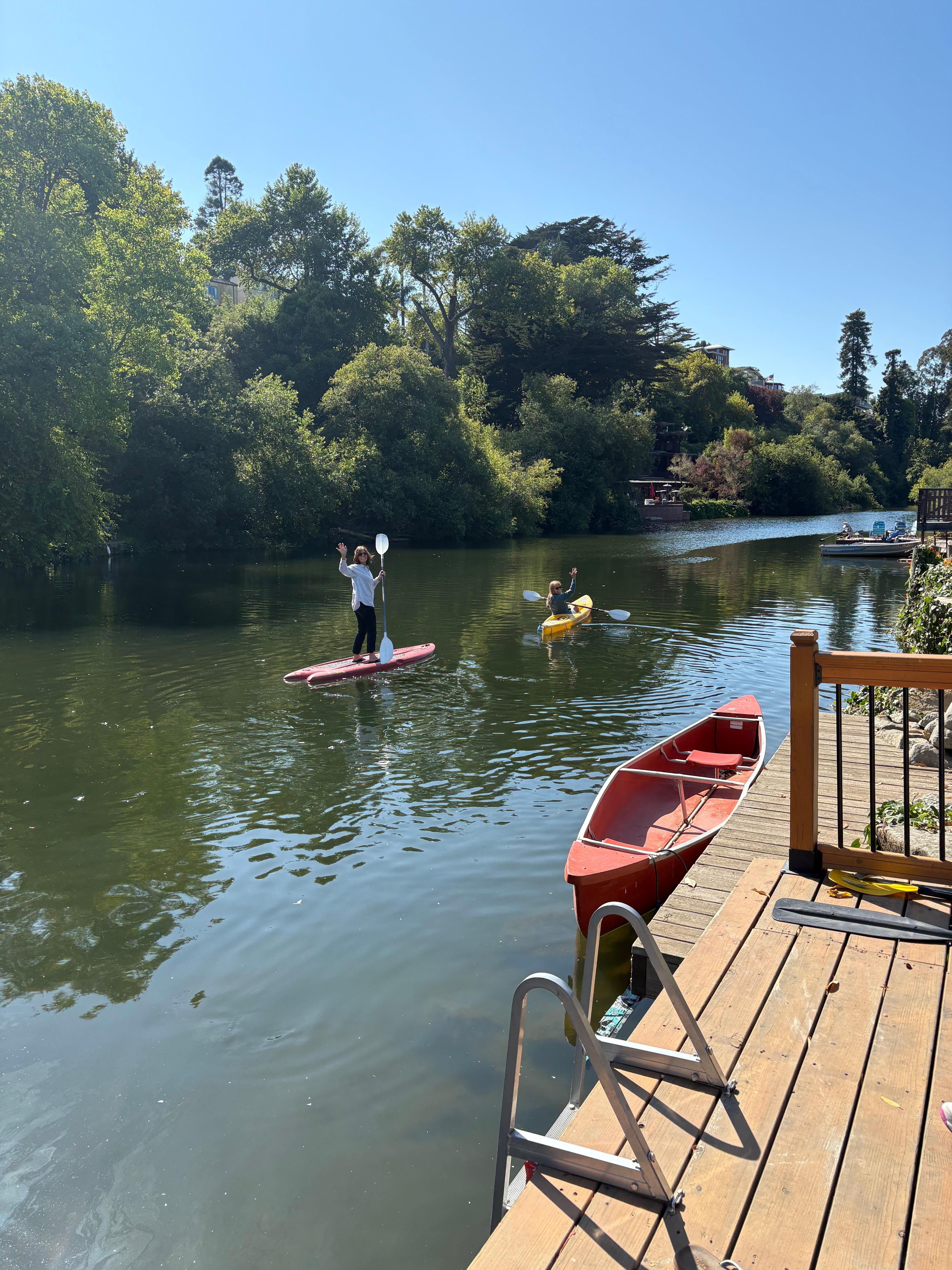 It has a personal boat dock with (2)kayaks and a Paddleboard to use at your leisure. Or you can Kick on the deck and look out onto the beautiful Soquel Creek and observe nature.