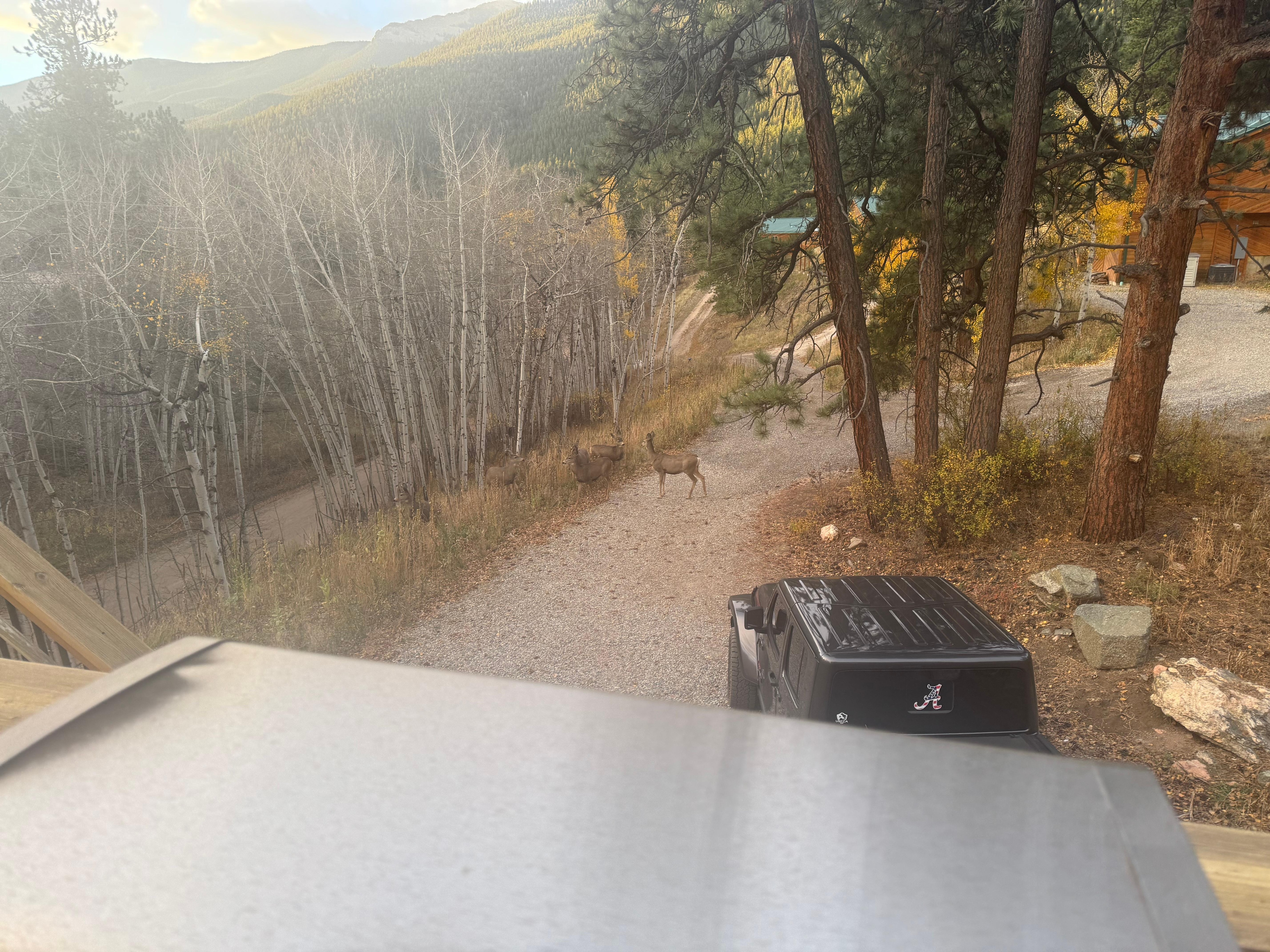 This cabin is in a quiet area at the end of the drive. Only about 3/4 mile off of 285 on a dirt road. Easy drive up 285 from Denver if you are flying in. Lots of hiking in the area. Ski resorts close by but then you can escape the tourist areas and come back to your quiet home away from home.