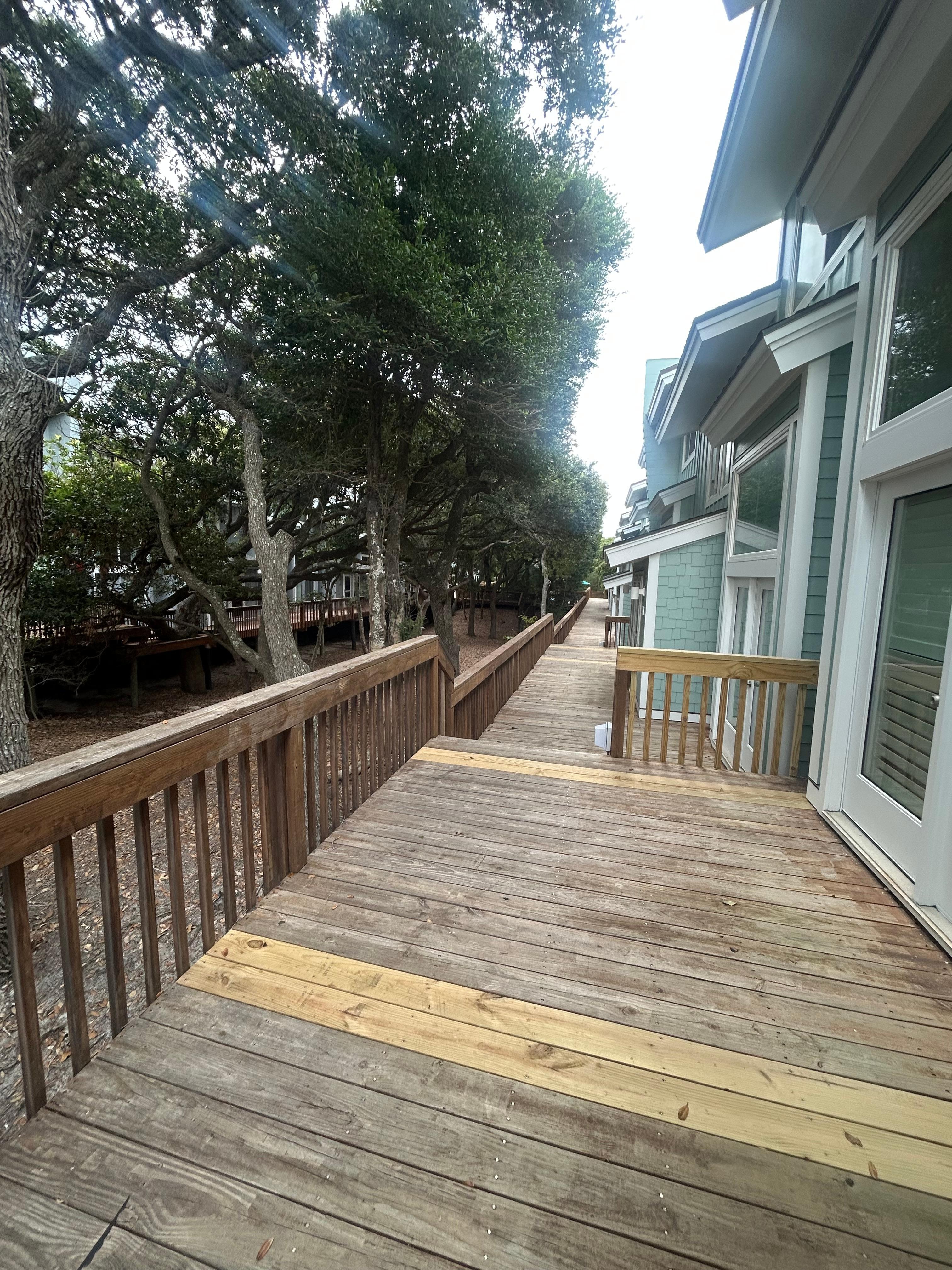 Our home is tucked away in the maritime forest of Pine Knoll Shores with access to the refreshing pool and only steps away from the gorgeous Atlantic Ocean. Our home offers a spacious vacation spot just right for your family. This charming 3 bedroom, 2 1/2 bath townhome is family friendly, conveniently located, and perfect for a fun filled vacation. The multi-level unit begins with a covered carport entrance with parking for 2 vehicles. Once inside, the stairs head up to the main living area which allows direct access from the deck to the pool or the beach! A few more steps up is the generous dining area with a fully equipped kitchen, additional sitting area (sun room), half bath and laundry closet. Another level up provides a bedroom for 2 guests (full size bed). The last level up provides a hall bath, bedroom for 2 guests (twin beds) and a master suite (queen bed) with its own private bath and ocean view balcony. Our townhome is conveniently located minutes from great food, shopping, the NC Aquarium, Fort Macon and much more! All linens are included (sheets & bath towels).
