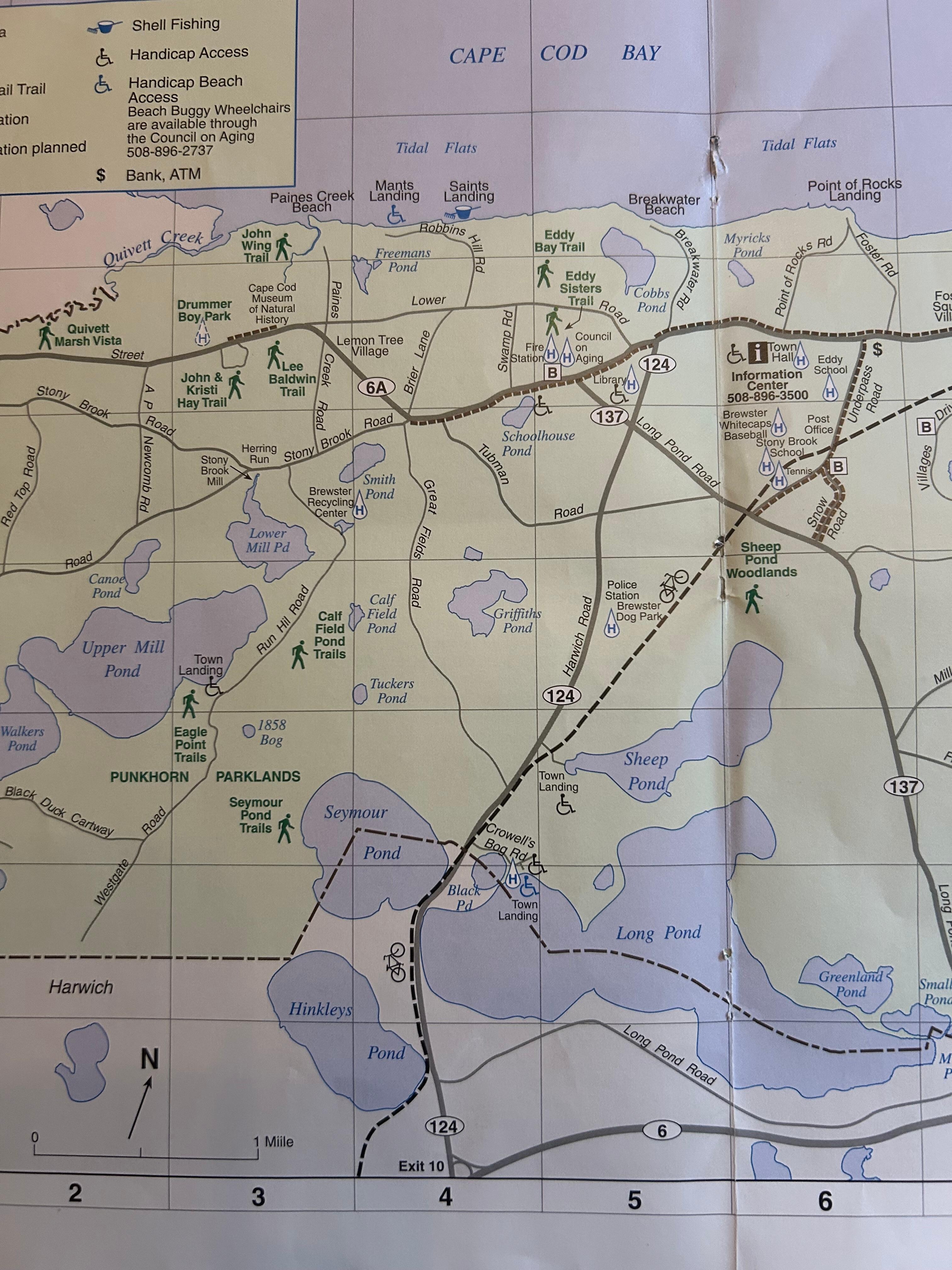 Charming, comfy, inviting and evocative of real Cape Cod landscape and living. Ideal place to relax and enjoy the natural treasures of the Cape. Brewster has many fresh ponds to choose from by day pass and access to natural and uncrowded shorelines on the bay here and in Dennis. Lots of open space to hike, bike, swim, kayak, sunbathe. Property is snug in the woods and beautifully light morning and eve, tucked in the woods. The road in is quiet enough to stroll in the morning or evening. Lots of good seafood nearby. Recommend Guapo's for fun tacos and the seafood store across the lot for fresh fish. Owners are very considerate and caretake the property with love. Lots of fun stuff to peruse or play games if you have a rainy day. Nice neighbor. Townsfolk are exceptionally friendly. Best place we've stayed on the Cape yet.