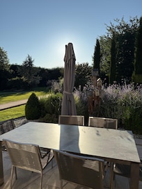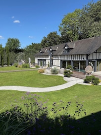 Nestled in a serene oasis of greenery, this property feels like a slice of paradise. From the moment you step onto the charming wooden pathway leading to the house, you’re greeted by elegance and tranquility. The traditional half-timbered facade, framed by vibrant landscaping, exudes timeless charm.Inside, the large windows seamlessly connect the cozy interior to the breathtaking outdoors. Lounging on the sofa, gazing at the lush gardens through the sheer curtains, felt like pure bliss. The soft rustle of leaves and the golden sunlight streaming in created an ambiance of perfect peace.Every corner of the garden is a masterpiece, from the thoughtful arrangement of plants to the open spaces that invite you to breathe deeply and let go of life’s stresses. Spending time here wasn’t just relaxing—it was replenishing. The stillness and beauty allowed me to recharge on a level that few places can offer.Whether soaking in the serenity of the garden, enjoying the warmth of the home, or simply being present in such a magical setting, this property is a haven for anyone seeking to reconnect with nature and themselves. An unforgettable experience I will cherish forever. !