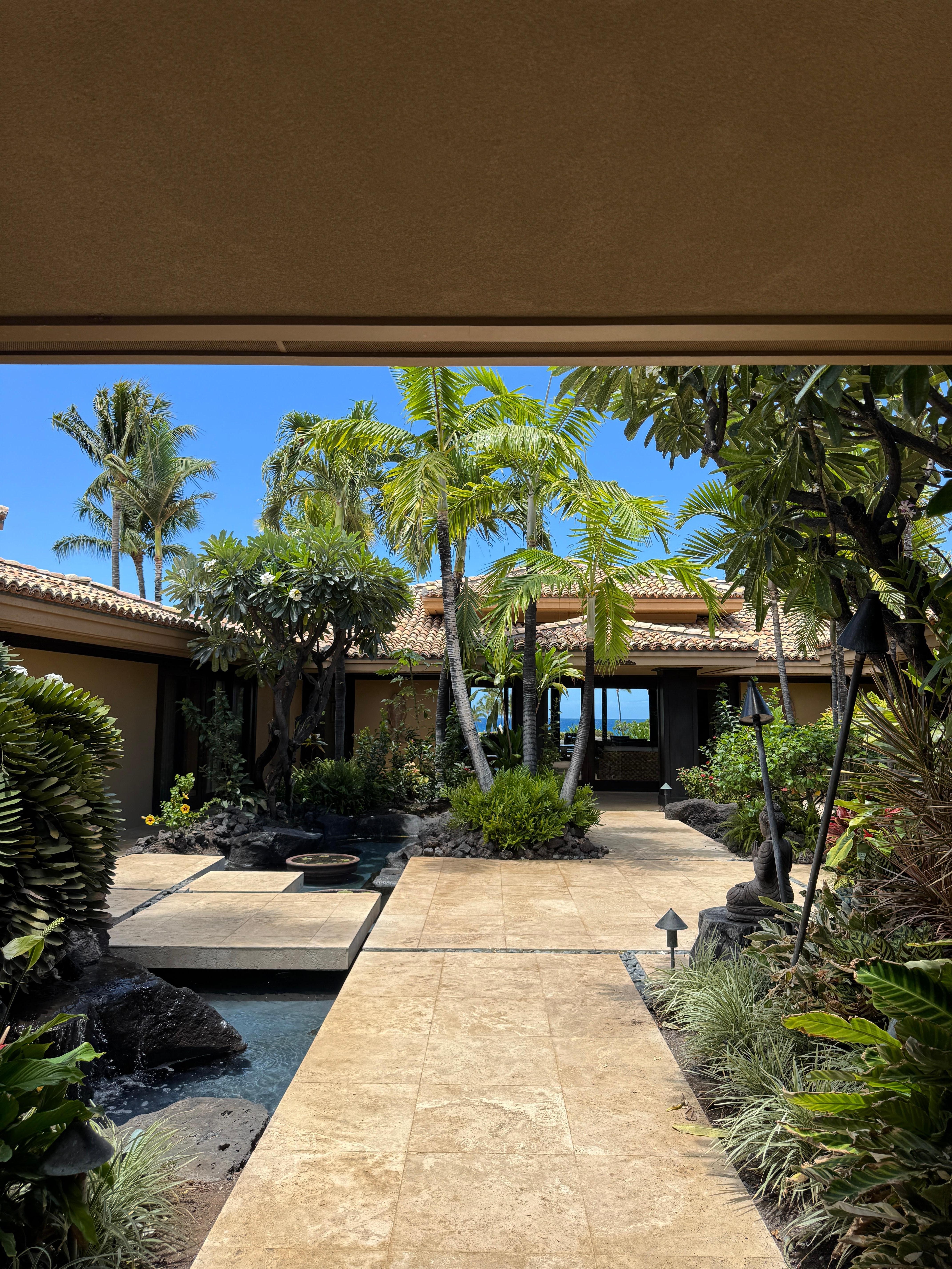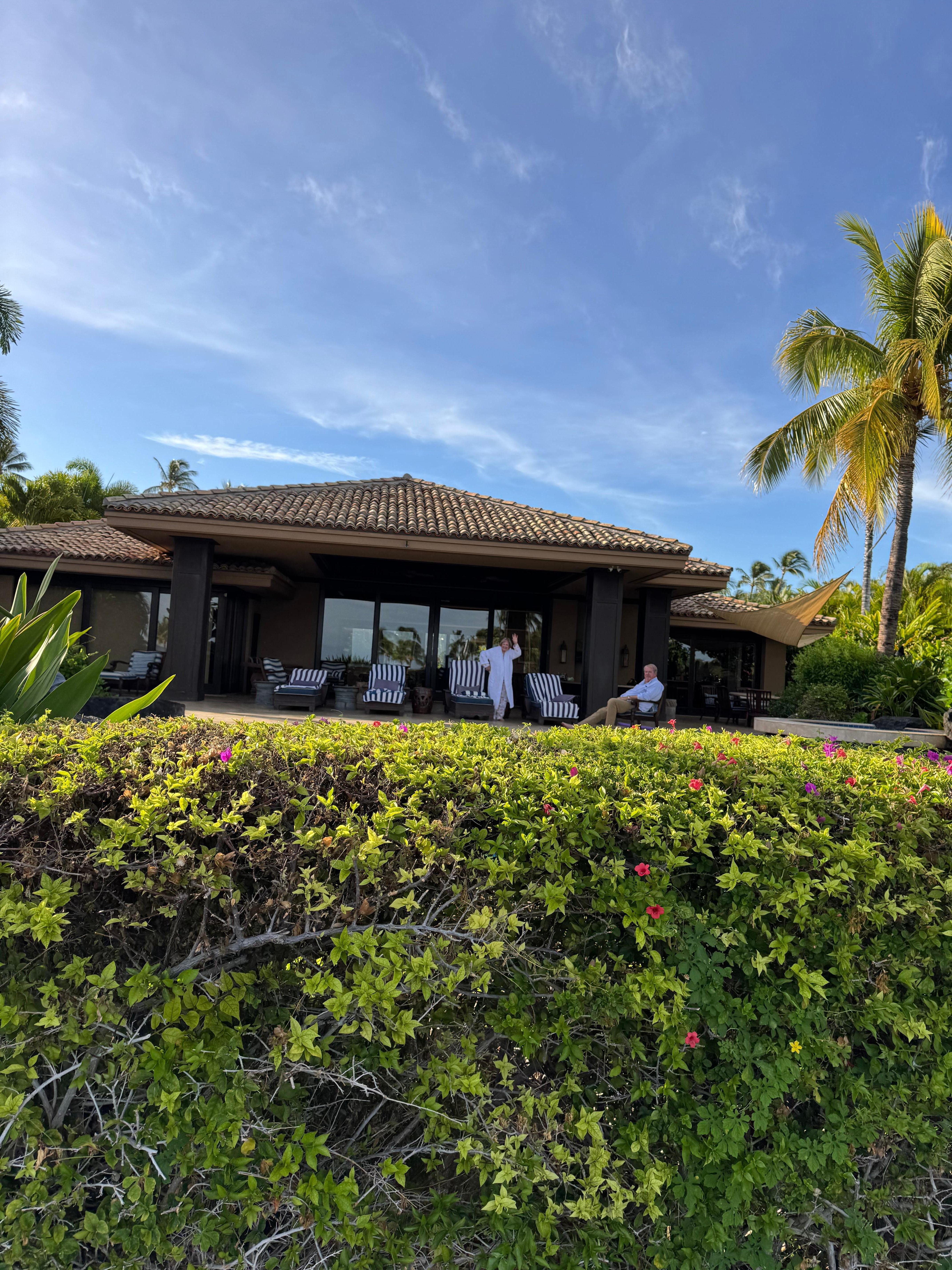 The lanai welcomes you with a large, naturalist infinity-edge pool looking out towards the private members club and Fairmont Orchid beach just beyond.