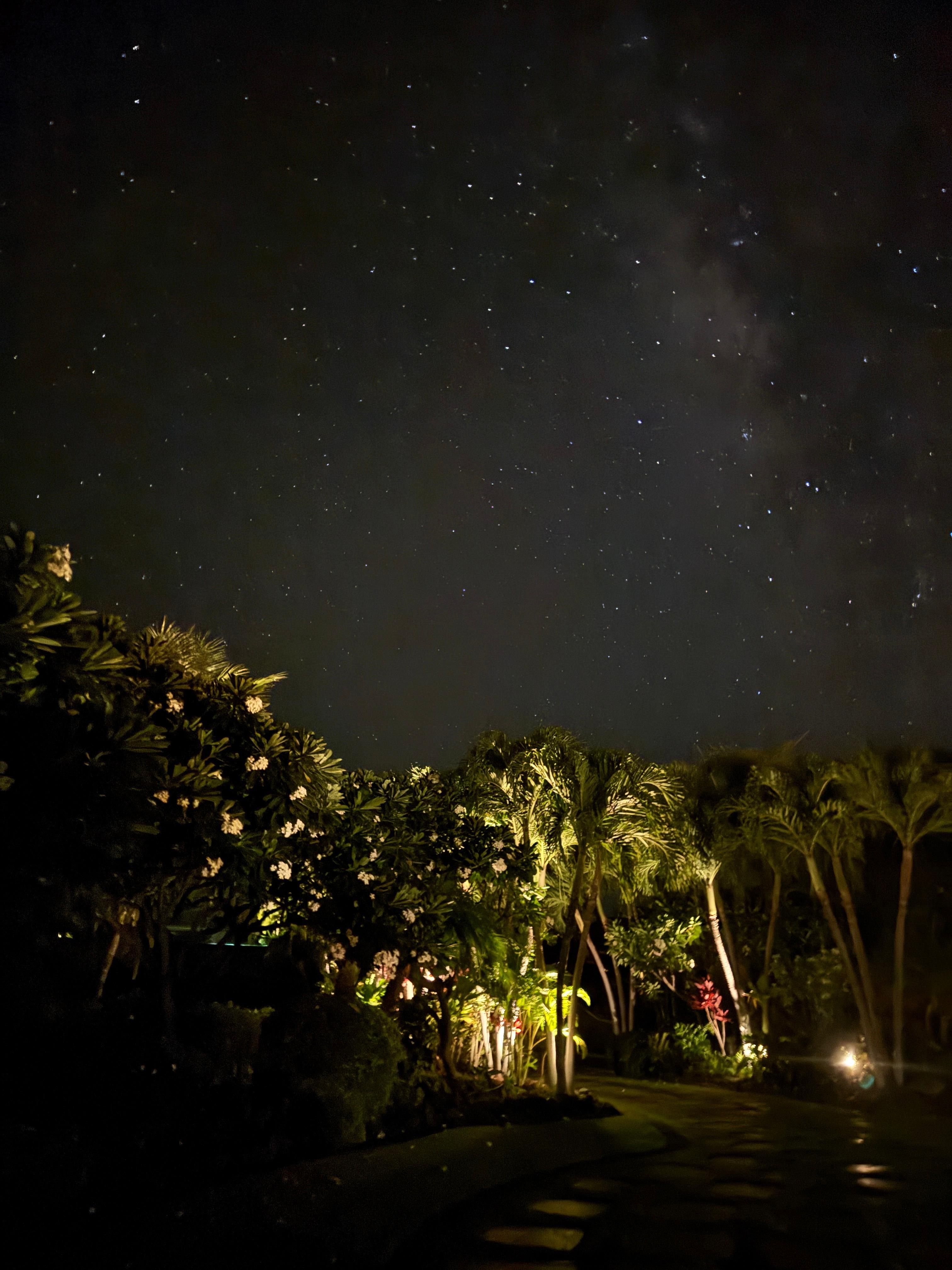 Ample seating completes the outdoor dining and entertainment space, allowing for pleasant meals surrounded by the sounds of birdsong and the warm trades rustling through the palms.