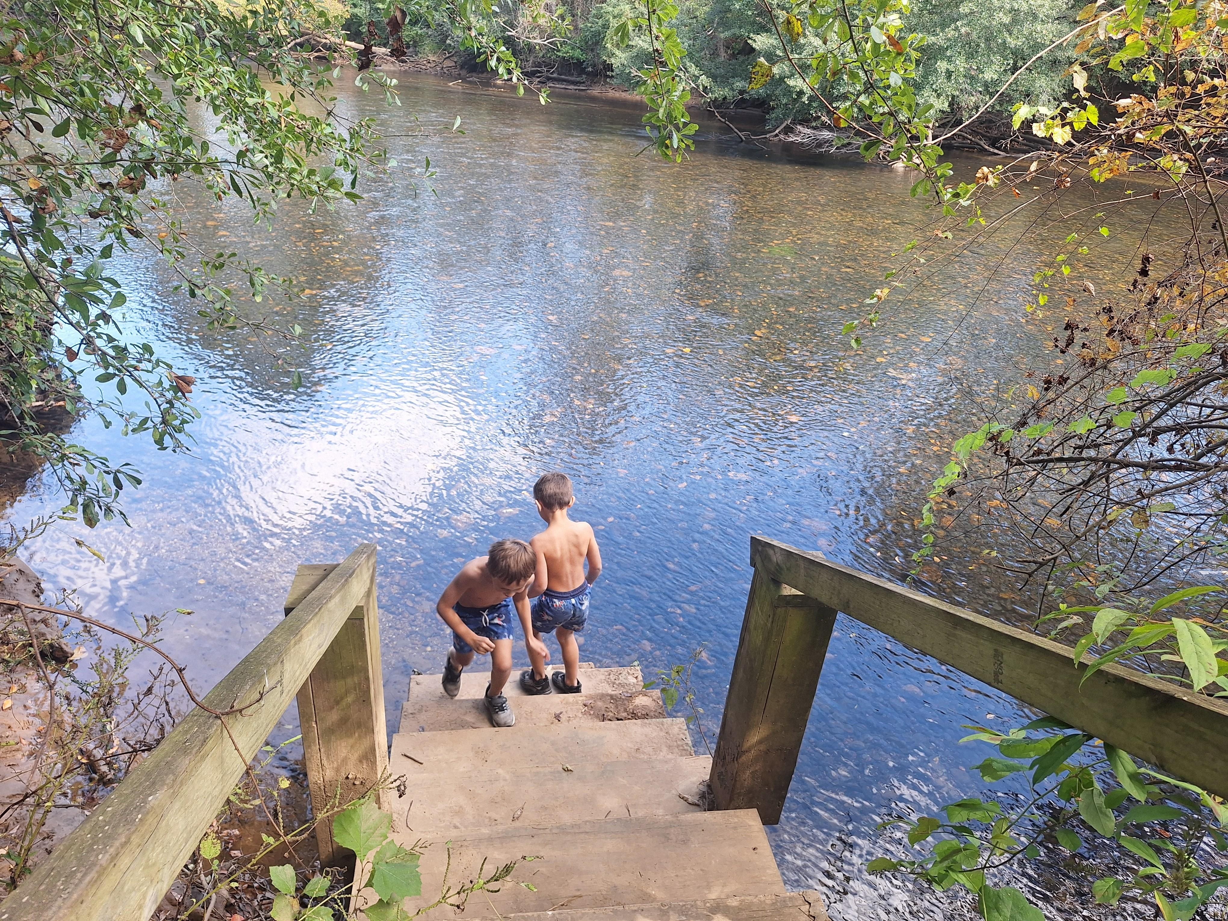 The Jungalow sits on stilts overlooking the Ocoee River with a large deck where you can enjoy your morning coffee and the sunrise, watching the water go by. Later in the day, river stairs will take you right into the water where you can cool off or enjoy some fishing (bass, bluegill, sunfish) or walk over to the neighborhood boat ramp to scope out the tubing access. Gather around the firepit with cooking grill at night with your favorite beverage and watch the sunset behind the house! Sit and relax at the brand new outdoor covered bar and barbeque shed! The Jungalow has a large 1-acre yard and provides plenty of space for lawn games. We provide four sit-on-top kayaks (two single person kayaks, one double seater, one kid-sized) and a variety of tubes for guests to enjoy, as well as cornhole boards. There are two traditional bedrooms and two open-air (no doors for privacy) bedroom loft spaces. The Master has a king-sized bed, the second bedroom has two twin beds and the lofts each have a full-sized bed. The bathroom has a combination tub/shower as well as a washer and dryer for guest use. All beds have Dreamcloud hybrid mattresses. The couch is large enough for someone to sleep on if desired, though it is not a sleeper sofa.