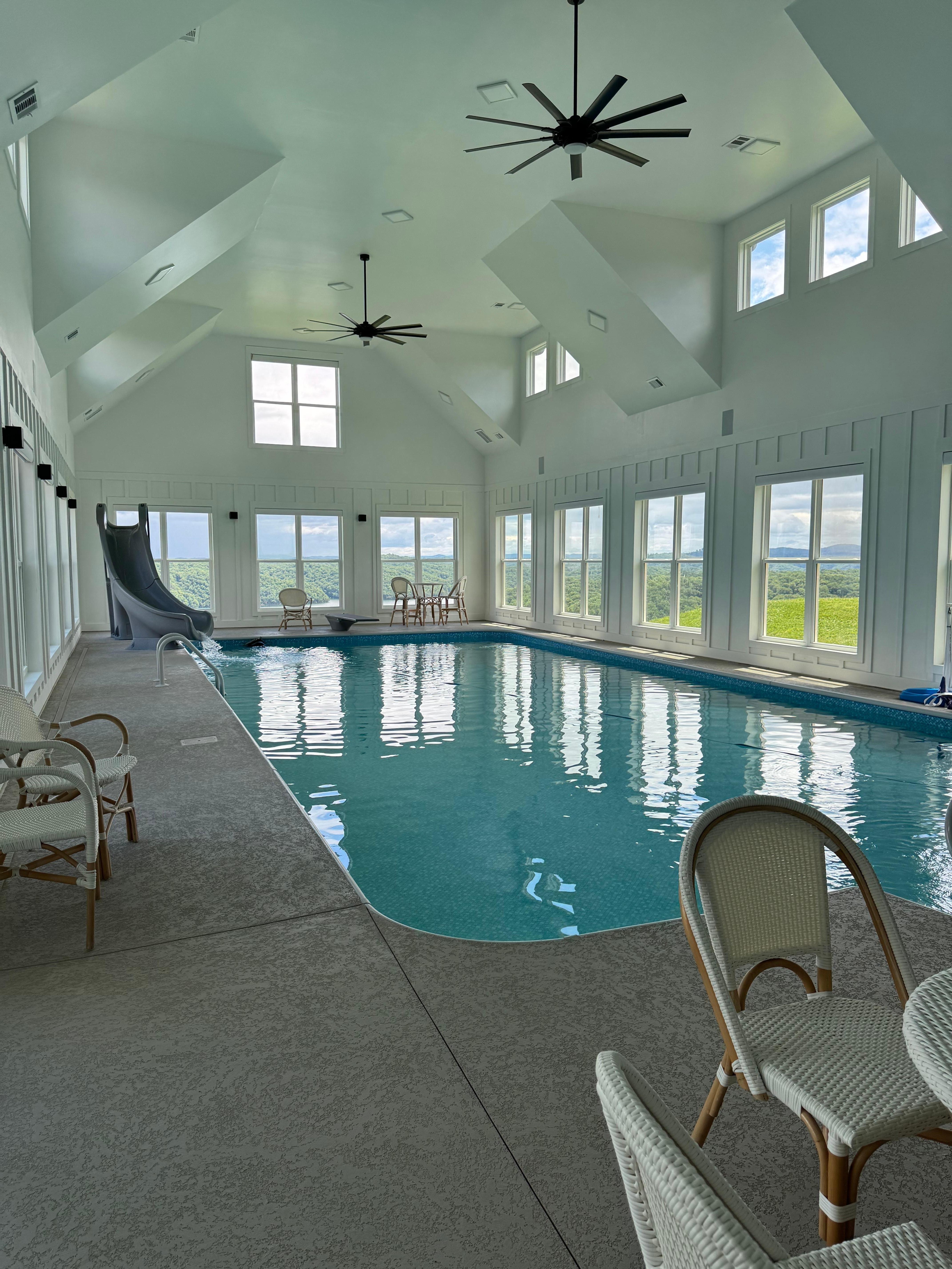 One of the most beautiful spots on Dale Hollow Lake, this lake-view house will meet everyone's needs! With over 8,000 square feet of rental space, indoor pool, hot tub and outdoor fireplace, this place has it all. This home has three master bedrooms with full baths in each, all with a view of the lake. Loft area upstairs has 2 sets of bunkbeds with trundle beds, and sleeper sofas in the bonus room and upstairs living room. Main kitchen is fully stocked with dining table which seats 10 and bar area that seats 6. Another small kitchen area located in the pool area with counter seating and extra refrigerator. Bonus room features a pool table, ping pong table, gaming chairs, and TV. Pool area includes slide, diving board, kitchen with bar top, refrigerator, and ice machine (located in closet of pool area), along with plenty of seating. House includes lower and upper deck space, all facing the lake. Blue tooth stereo throughout house. Smart TVs in all bedrooms, living rooms, bonus room, pool area, outdoor deck. Cable provided on some TVs also. Property is 0.6 miles from Dale Hollow Marina, 2 miles from Cedar Hill Marina, 1.8 miles from Dale Hollow Campground and Fish Hatchery, and 5 miles from downtown Celina. Large parking area in front of house and 2 spaces in garage. If you are looking for relaxation, peace, quiet, fun, family time, or a nice get away from your daily routine, this is the place for you.