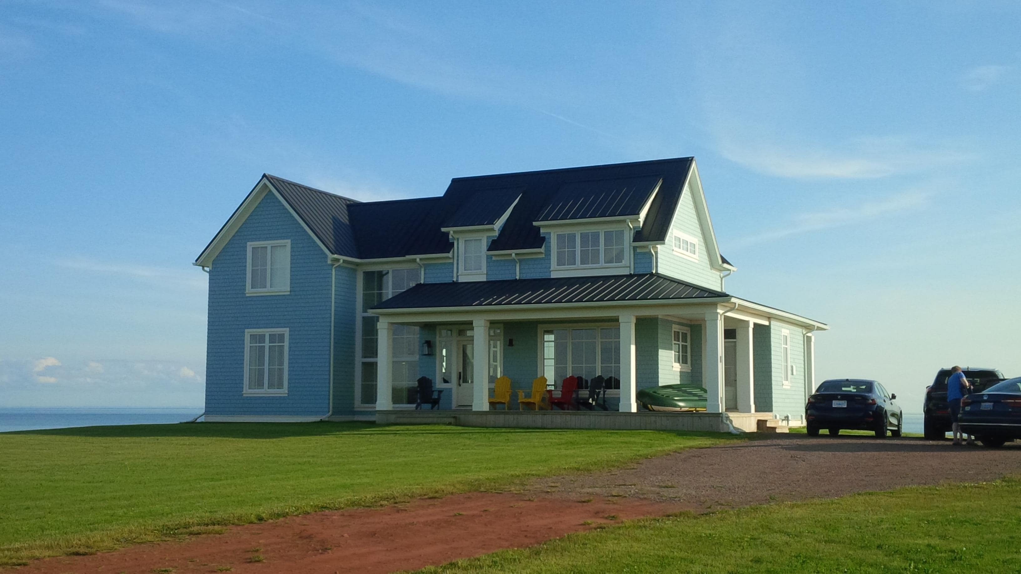 From the minute you turn onto the red dirt lane, greeted by wild roses and clover, you will feel at home on PEI. The first step inside welcomes you with breathtaking ocean views, which you can enjoy from every room of the house. Wake up early and take in the sunrise with a coffee on the front porch. Lounge in the Great Room near the fireplace watching the sunset on the water. Prepare a meal in the beautiful kitchen with a six burner propane range and enjoy it at the large dining room table overlooking the harbour. The main floor master invites you to unwind in a four-poster king bed and ensuite bath which features a soaker tub, double sinks, walk-in shower and one of the most magnificent views you’ve ever seen. If this is a work-infused vacation for you or a guest, set up in one of the many work-from-home informed spaces with a million dollar view and reliable internet. When your colleagues ask you where you found your Zoom Background you can confidently reply, “It’s just my home office for the week.” With three king beds, two queens and built-in four bed bunk-room, everyone will have space to claim their favourite nook and relax.