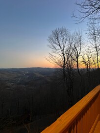 The Flight Deck has three levels of cozy beauty. The main floor offers two bedrooms with a shared bathroom. One room has a king bed and the other a queen. The main floor is also where you will find the fully stocked kitchen and living area with a queen pullout sofa. You will find yourself gazing at the view while sitting next to the gas logs or take a walk out on to the wrap around deck and enjoy the polywood chairs, lounger or swing. Over looking the main floor is a loft. The loft is a perfect place to play a game of chess or just relax with a cup of coffee. On the loft level you will also find a private main suite with a queen bed and ensuite bathroom. The basement floor is where all the action happens! It has another living area, a game room with a pool table and a game table, arcade game and two sets of bunks. One bunk bed is queen over queen and the other is twin over twin making it versatile for any group. The basement floor also has a beautiful bathroom with double sinks and a tile shower. You are welcome to use the washer and dryer if you choose to. The basement floor also has direct access to another deck with a bar, access to the firepit and cornhole area. The Flight Deck will offer a beautiful sunrise from the deck and you will not want to leave.