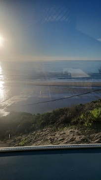 ATTENTION! - STEEP STAIRS TO THE UNIT: MAY NOT BE FIT FOR SENIORS OR YOUNG CHILDREN! Bedroom has an opening to the living room, no door. Vaulted ceiling, but not very high - not recommended for very tall people. But it is one of the best views on the property! - Cozy and warm, rustic and vintage, positioned like a Crow's Nest on the top floor under the roof, with steep stairs this 1 bedroom unit with spectacular ocean and beach view from living room, kitchen and even bathroom window will be your secret get away. Around 75 ft. above sea level in vintage, rustic Hideaway Ocean Suites Motel, away from the busy street, nestled in quite, residential neighborhood. It's not upscale brand new property, but clean and the view and location will sweep you away. Short walk to the beach (5-10 min) or very short drive on the same road: free parking and bathrooms at Canyon dr. ocean front park. Fly kite, watch whales, collect agates, stroll, bike, jog, walk, fish surf, make a bonfire etc..