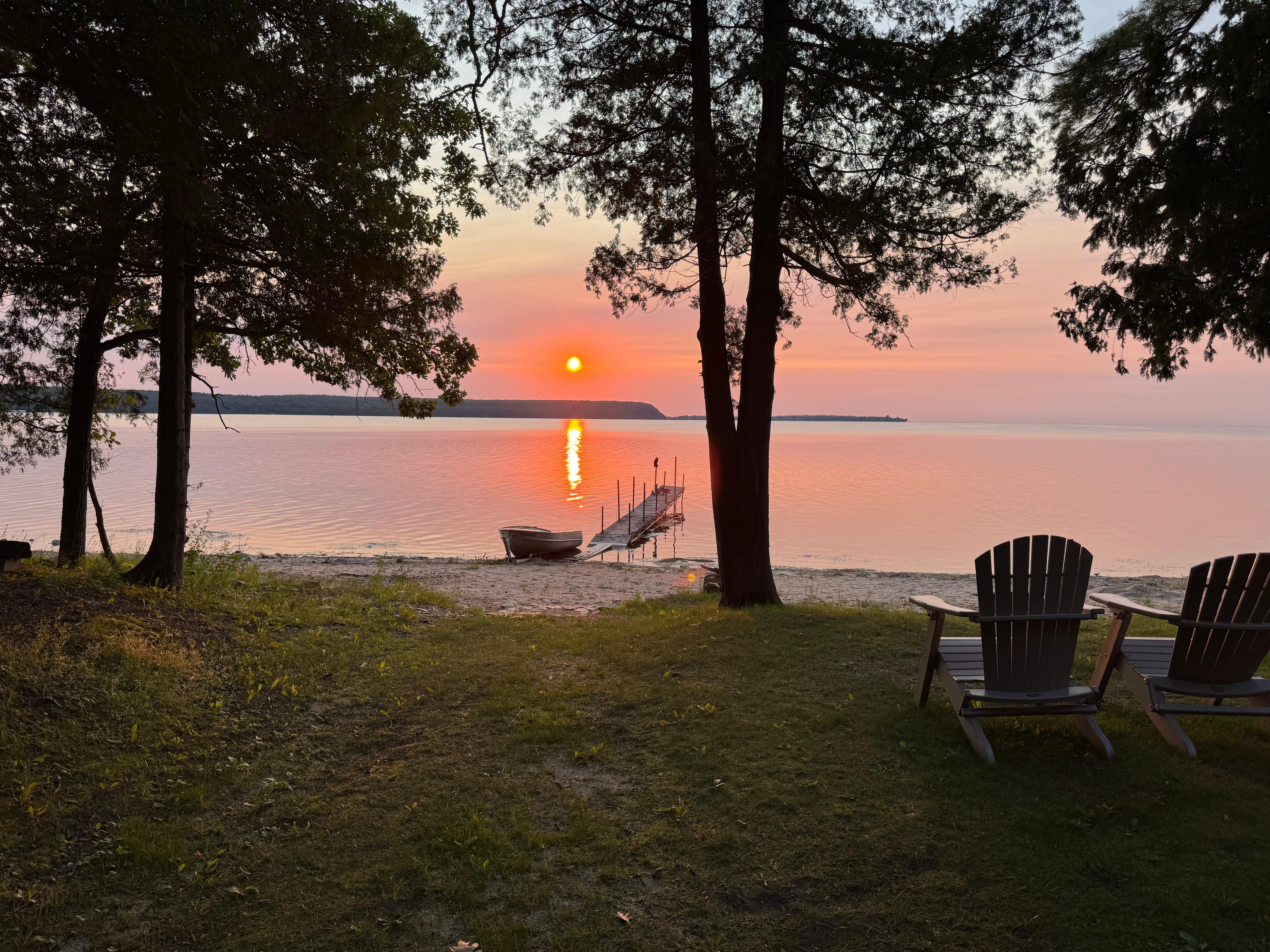 We had a great stay. It was so close to the water, and the sunset was fantastic. It could be seen from almost everywhere in the house, but the porch view was awesome! We also used the firepit every night we were there except for the one day it was raining. And we appreciated the quiet surrroundings. Easy access to all of the local shops/restaurants, and easy driving to around the other parts of Door County. We would definitely stay here again when we visit the area in the future!