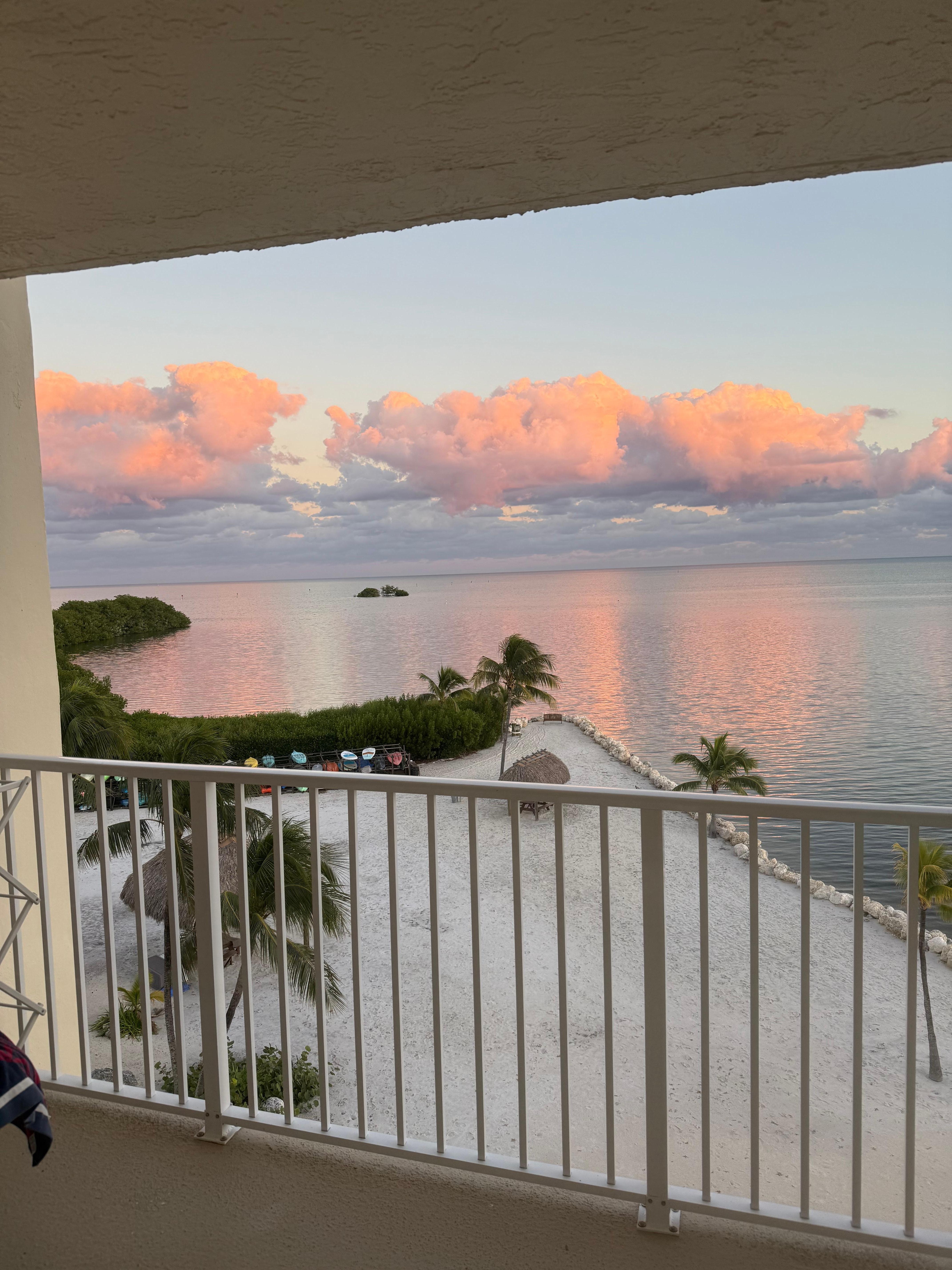 Our condo is located on the 5th floor, in an elevator building, and offers a direct ocean front and beach front view that can be enjoyed from all rooms, or by sitting on the large 28' long private balcony that is accessible from all rooms. The exposure from our private balcony faces east, offering spectacular views of the expansive private beach, the Atlantic ocean, the sunrise, and various uninhabited offshore Keys. Our unit does not face the school or the mangroves or Wrenn St., like the majority of units at this complex. It's direct oceanfront and beachfront location make this unit one of the most coveted in the building. There are absolutely no traffic noises.