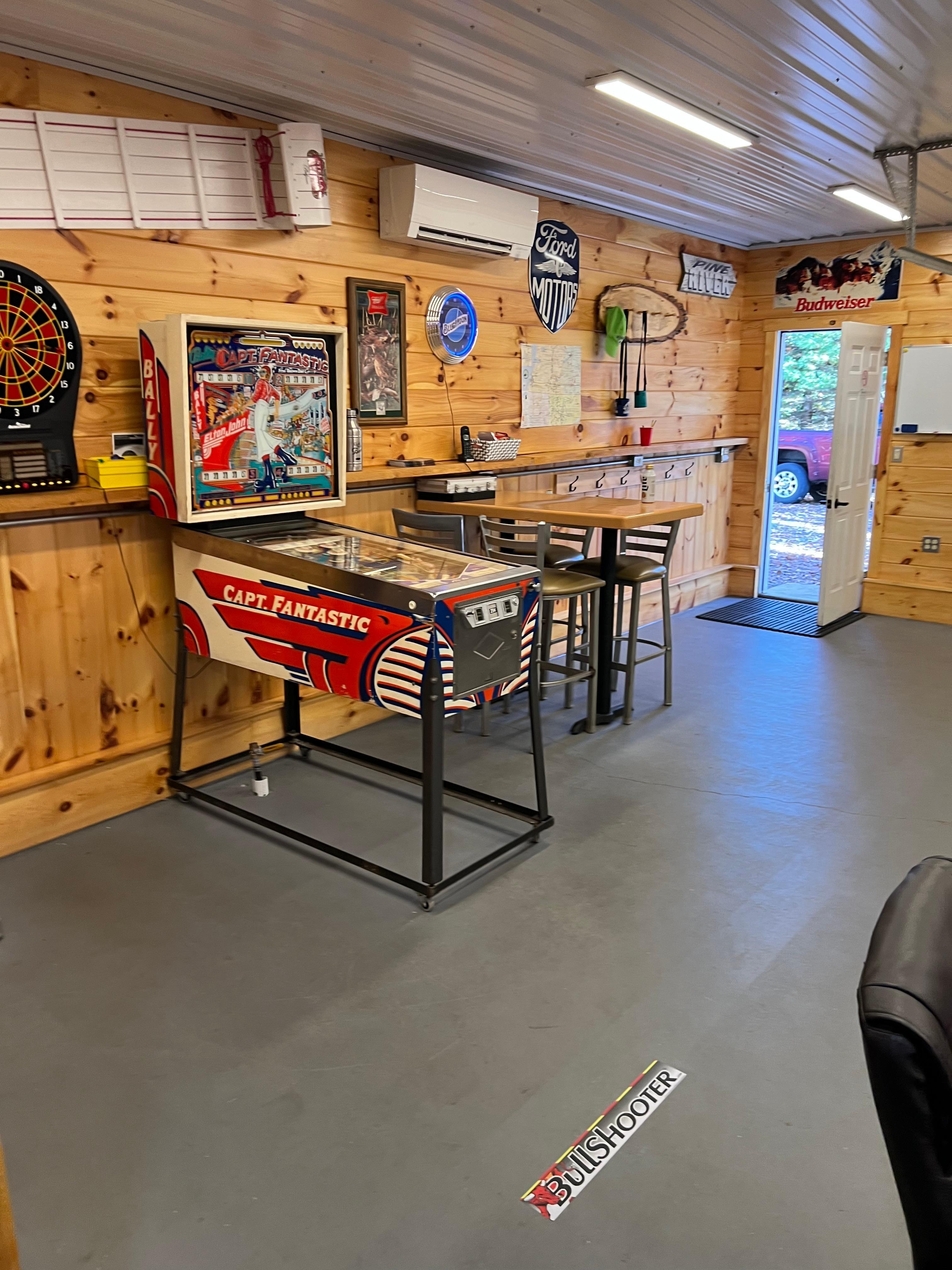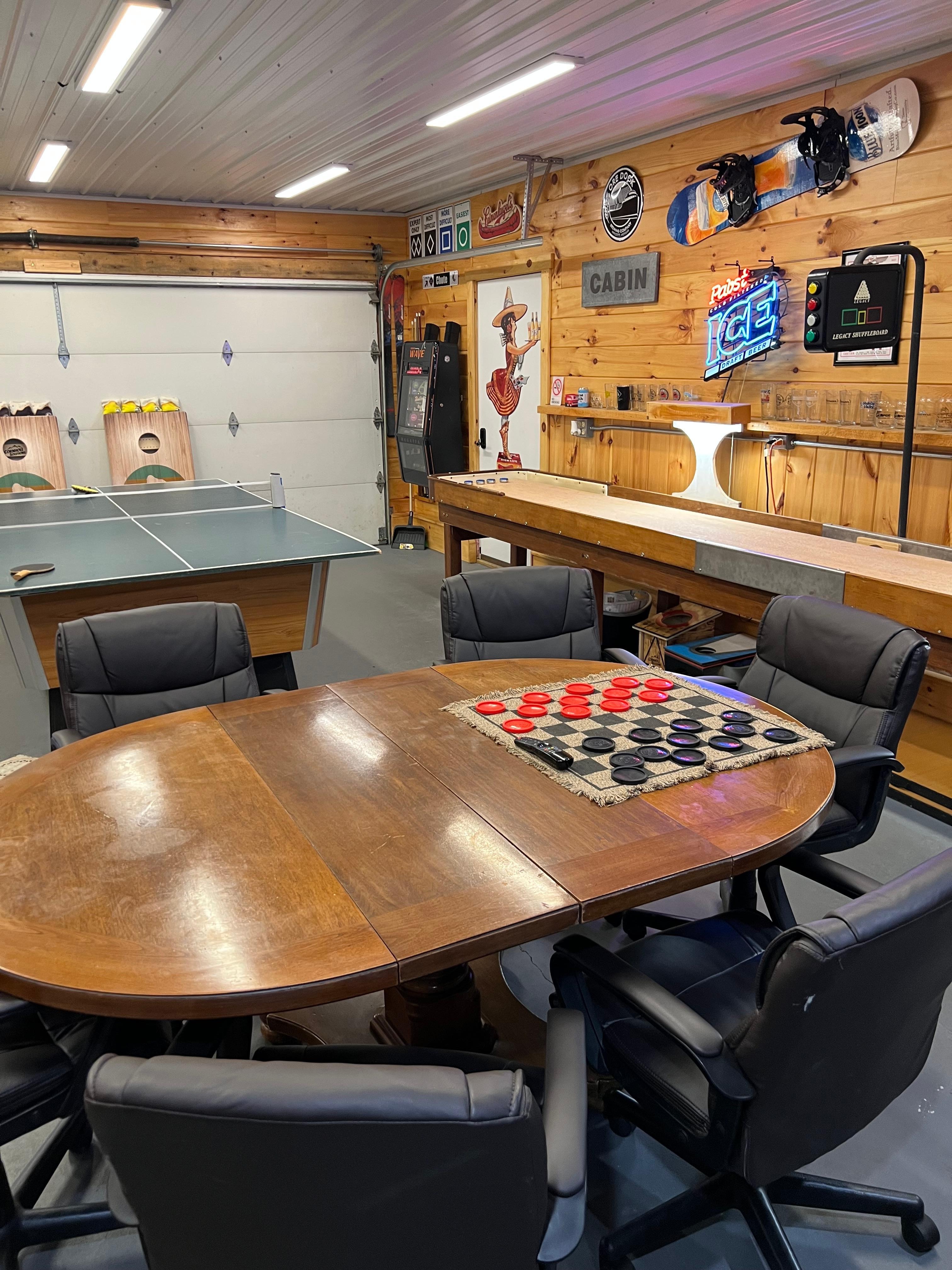 A frame 2 bedroom cottage with pull out sleeper, washer and dryer, fully remodeled with air conditioning, fully furnished with all necessary appliances, wireless WIFI and outdoor fire pit area. Detached large garage fully remodeled into game room and bar with air conditioning. Game room has a bar, ping pong table, fuzball table, arcade machines,full size shuffleboard table, juke box and dart boards. Property also has a cook shack with ventilation system for grilling year around with a Traeger pellet