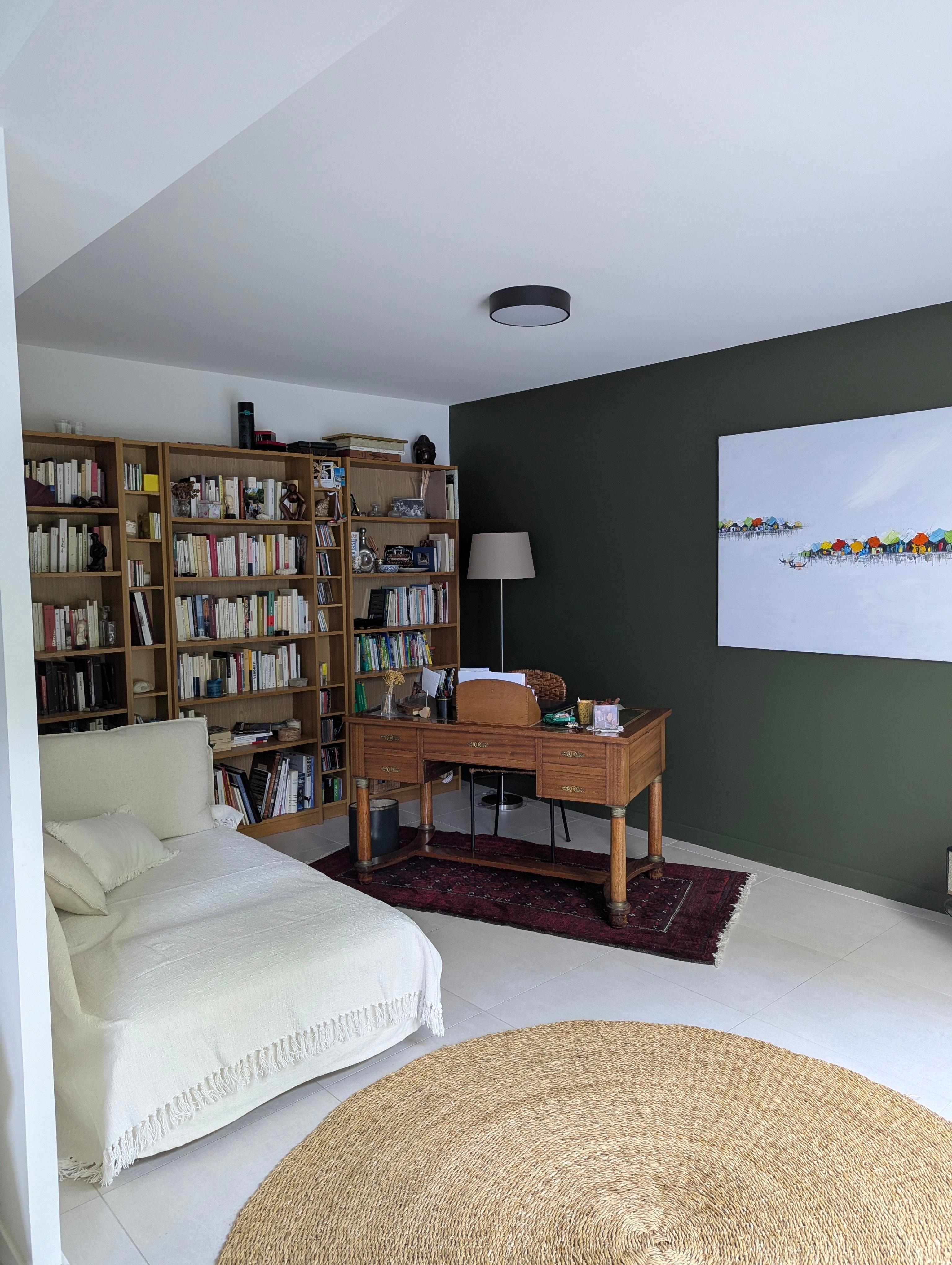 On the ground floor, the entrance leads to a bathroom with walk-in shower and toilets, a fitted kitchen open to a living room dining room, and a relaxation area with library, office and television area. The whole opens onto a terrace not overlooked, with dining area, which can be protected from the sun or rain by an electric blind.