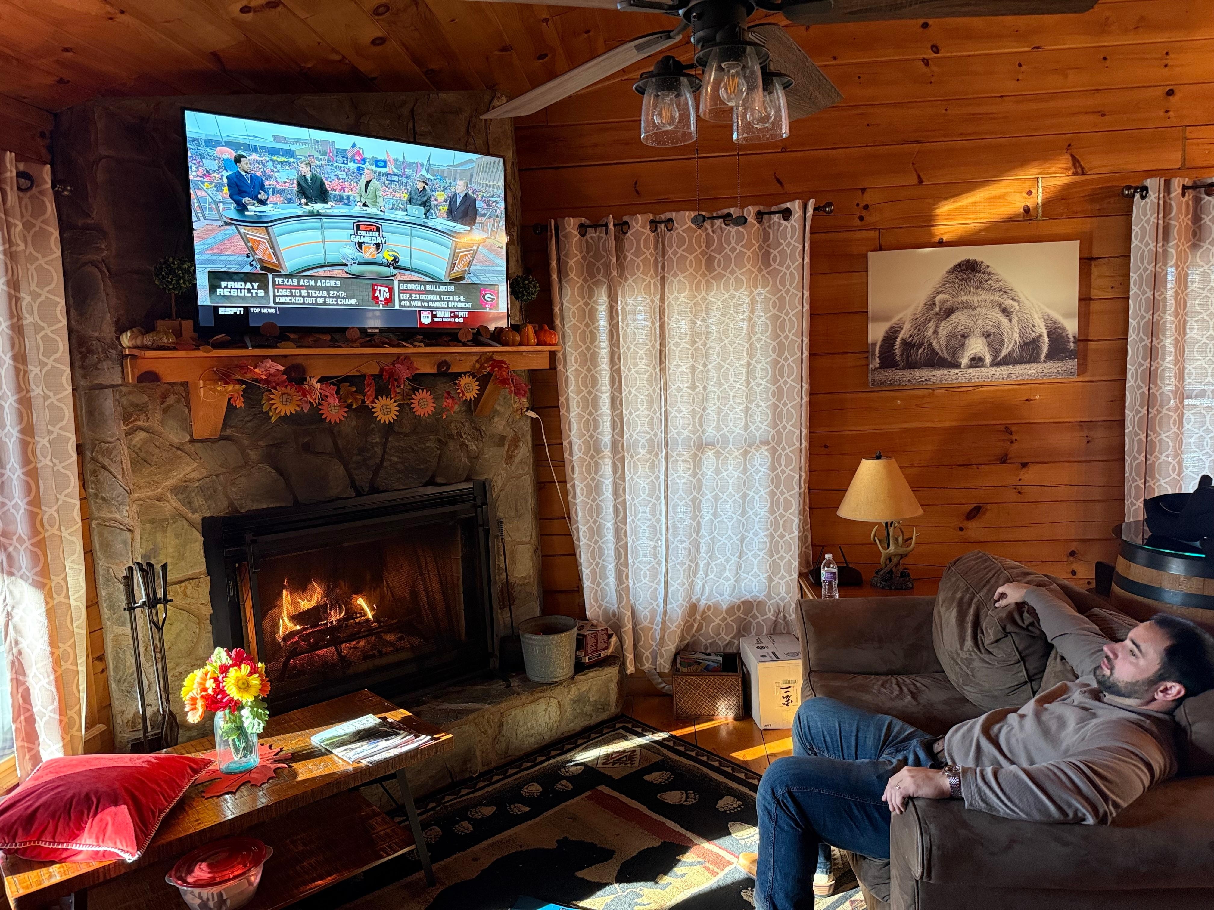 We really enjoyed the peaceful and quiet atmosphere of this cabin. Super comfortable king size bed. Used the hot tub every day and loved playing “old school” video games at night.