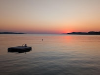 CLose to everything, length of the lake sunsets, no busy road to cross! A private lake vacation, only 2 rental cabins on the property each with its own beach.