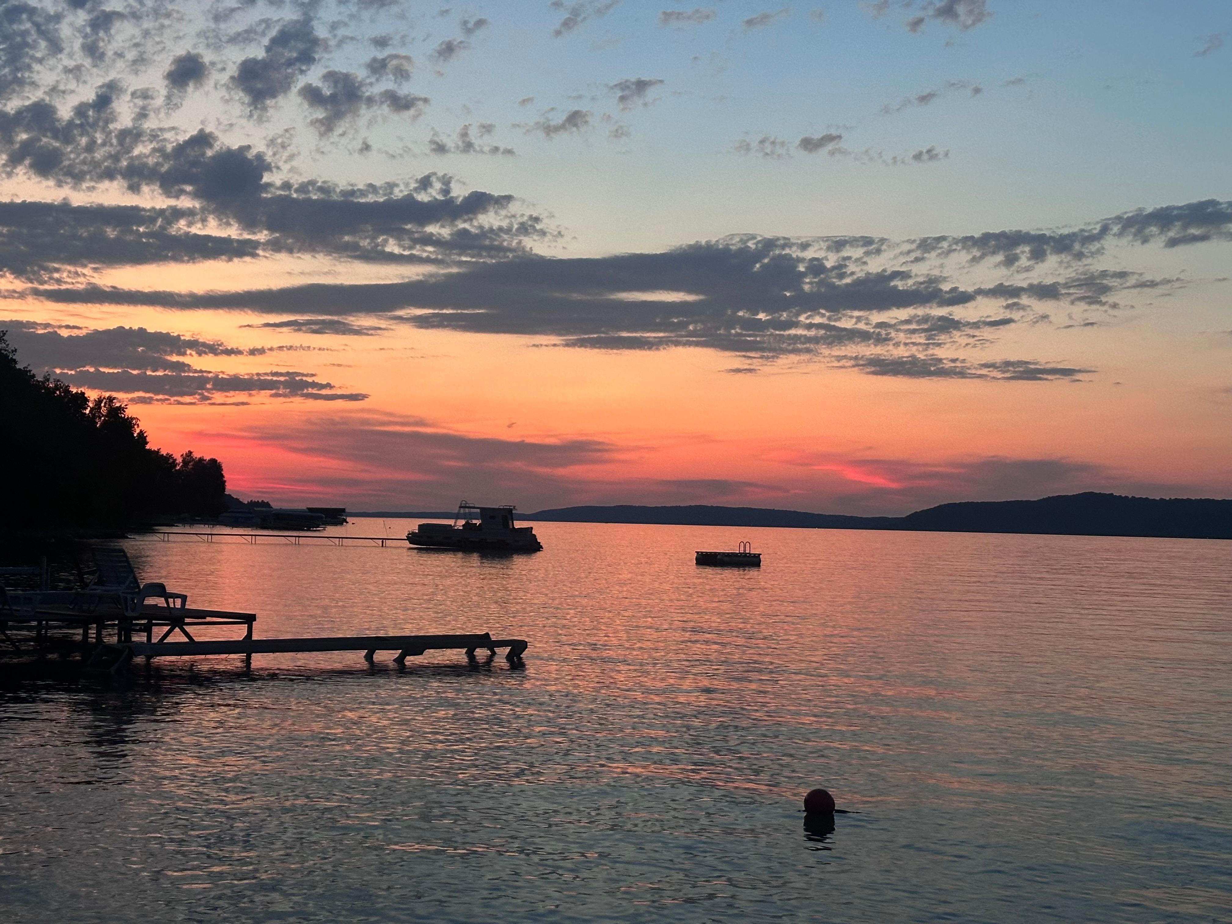 The outdoor space offers much to enjoy, from sunrise to sunset. Lounge in the adirondacks over a cup of morning coffee, take paddleboards out to explore the lake, host a lakeside dinner with the outdoor dining set, send the kids to the sandbox or driveway basketball hoop, try some gourmet s’more recipes at an evening campfire, and watch the stars shine or a storm roll through lakeside or right out the front windows. And, of course, swim for hours in the crystal clear water and shallow sandy bottoms that stretch hundreds of feet before dropping off into some of the deepest inland waters in the state.