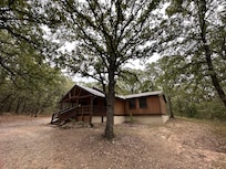 Uniquely private, heavily wooded property near Lake Texoma, the largest lake by volume in the state, and one of the nation's premier locations for striper fishing. You're just 3 miles from lively Buncombe Creek Marina and Anchor N restaurant. This clean, comfortable cabin in the woods is almost completely out of view from other homes, making for an especially secluded getaway. Yet it's just a 15 min drive from one of the most beautiful, clean sandy beaches on this giant lake. Or rent your own boat at Catfish Bay Marina, just 23 mins away, and visit The Islands, an equally beautiful place to relax in the sand. 6 min drive to Gringo's Mexican Restaurant & Dollar General, 8 mins to live music and food at Ollie's Juke Joint and Cafe, 15 mins to other restaurants in Kingston like Gecko's (try the sopapillas!), or just 18 min to the Walmart Supercenter in Madill, in case you forgot anything. In just 23 mins, you can even drive over into Texas to one of the best lakeside bar & grill venues Texoma has to offer, Pelican's Landing, at Cedar Mills Marina.