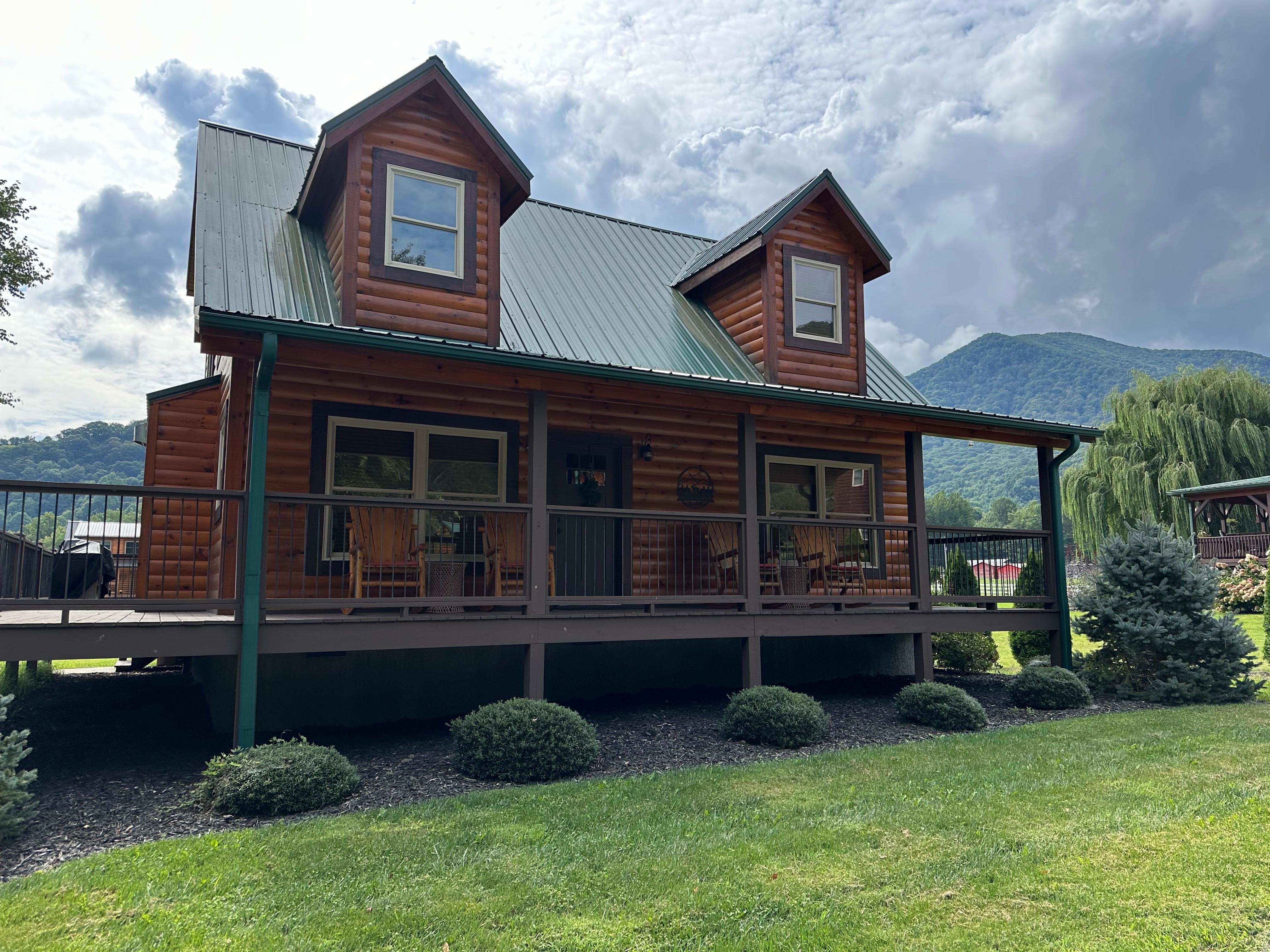 Picturesque setting with unobstructed year round wide open mountain views of the famous WATERROCK KNOB. The cabin has approximately 1450 sq feet of living area, plus it has a large wrap around deck in the front, back, and side. The cabin has rustic charm with an amazing mountain laurel weave staircase. Custom stone fireplace turns on at the touch of a button. The cabin has a large loft and family room both with 50" TV's and a beautiful full size kitchen with granite counter tops. Relax on the wrap around porch and watch the lightning bugs and the Elk graze in the meadow with the mountains as a backdrop, simply beautiful. Both bedrooms have plush king beds each with their own bath.