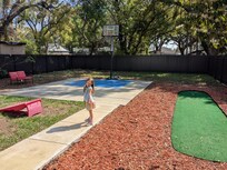 We stayed a full 5 weeks here and would definitely come back. It was a convenient short drive to a lot of the places we like to go in Tampa as well as to get on to I-4 to drive over to Orlando as well. The host had left us a personalized note as well as some snacks and bottled water to start our stay, and there were a good amount of supplies available for use. She was also very quick to respond to a couple inquiries we had through the Vrbo app and to take care of one minor issue that popped up. The backyard was perfect for our little pups, and they enjoyed having the space to run around. I enjoyed the putting green and basketball hoop to get a little activity in during the lovely Tampa evenings.