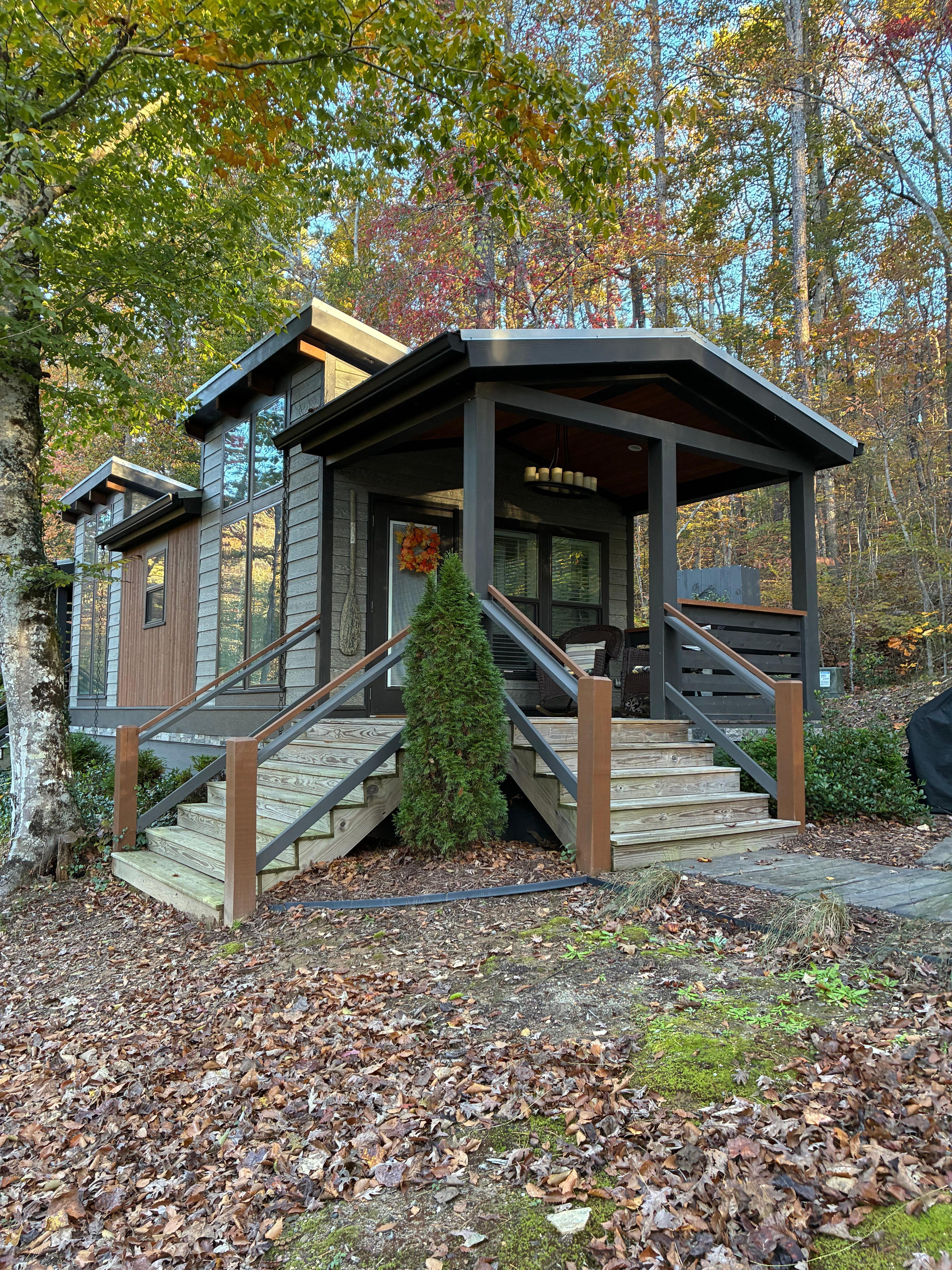 The cottage is light and airy with large windows and high ceilings throughout for viewing the river and surrounding area. The cozy, well appointed living space provides a complete kitchen, master bedroom, living area with sleeping sofa, and bath. In addition to the beautiful indoor space, two porches and a hammock area are available to enjoy the rushing river sounds. A riverside firepit and sitting area will also provide an excellent opportunity for relaxation.