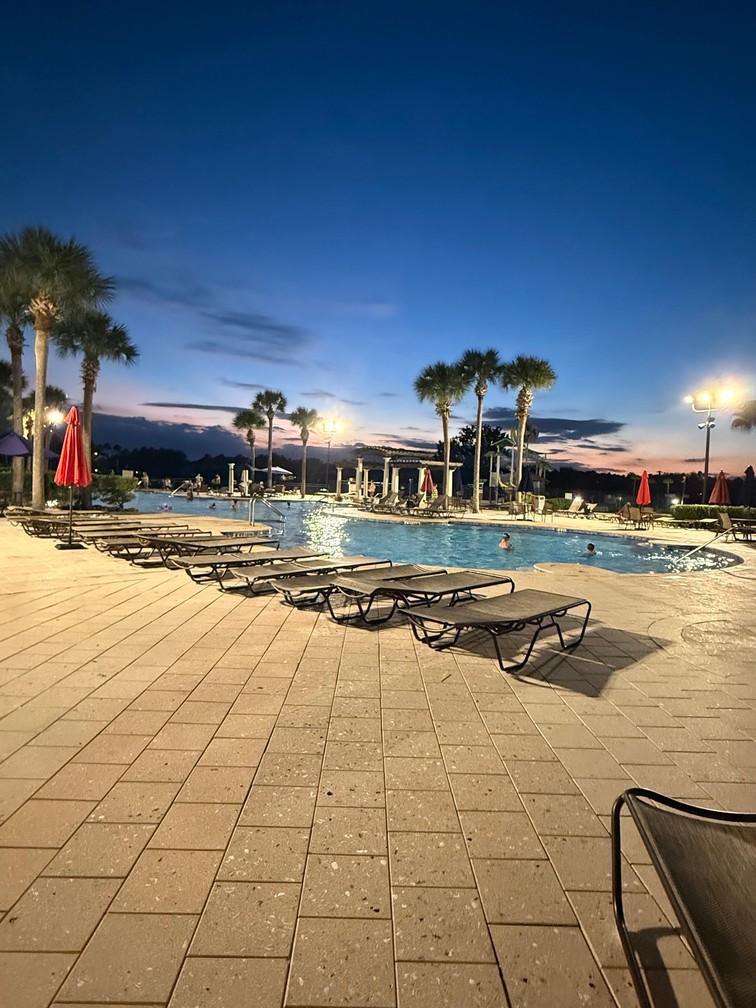 This upscale resort condo has all the amenities you will need after a fun-filled day at the parks including: Incredible and huge family friendly pool nicer than most hotel resorts, hot tub right next to the pool, state-of-the-art clubhouse with fitness area, on-site sundry shop, its own movie theatre, tennis and basketball courts, putting green, and a high quality young children's playground ALL at no extra charge! **PLEASE NOTE:** The large pool will be closed for resurfacing from Sept 5 to Oct 5. Waterslides will still be open, along with other amenities.