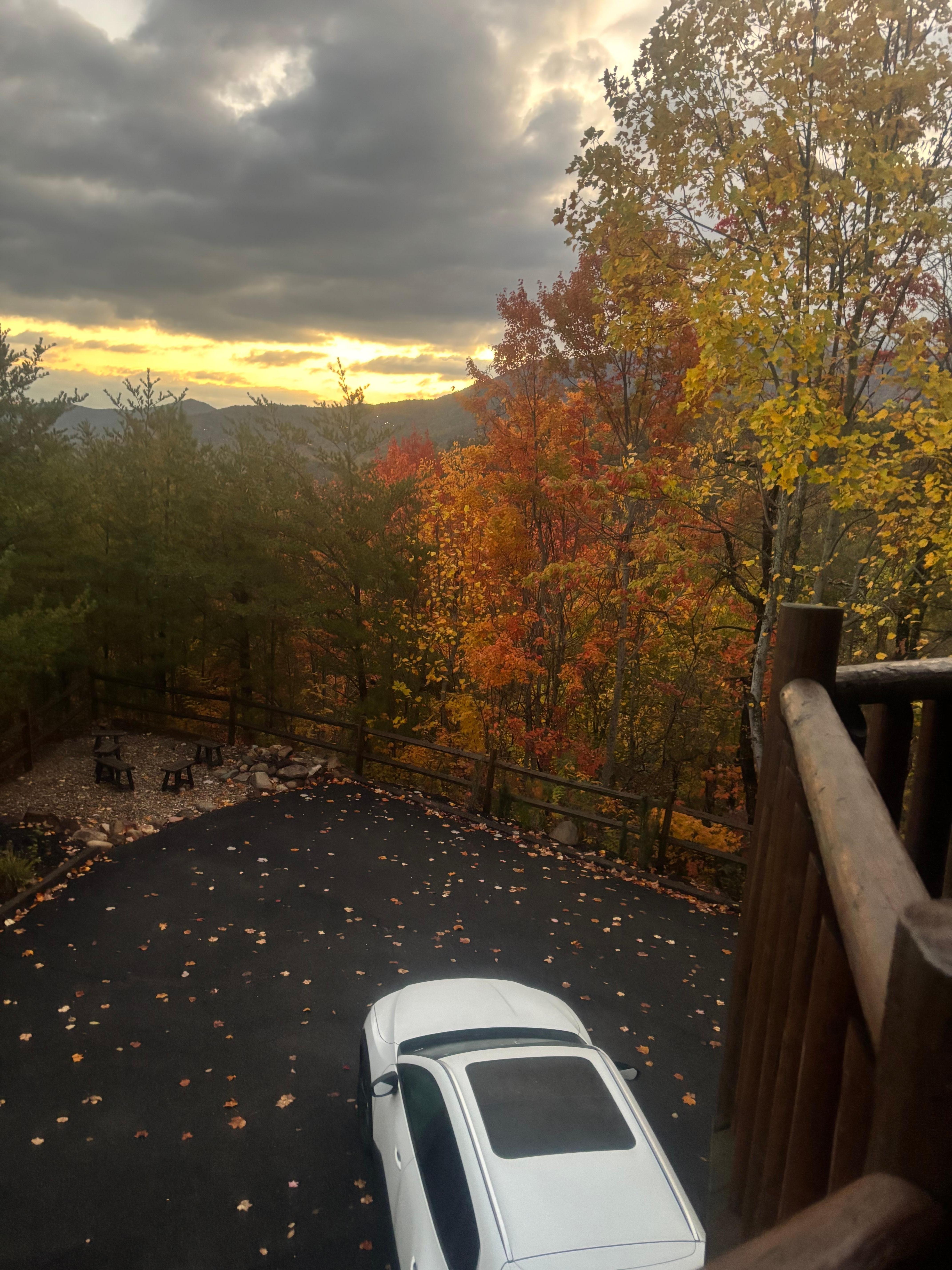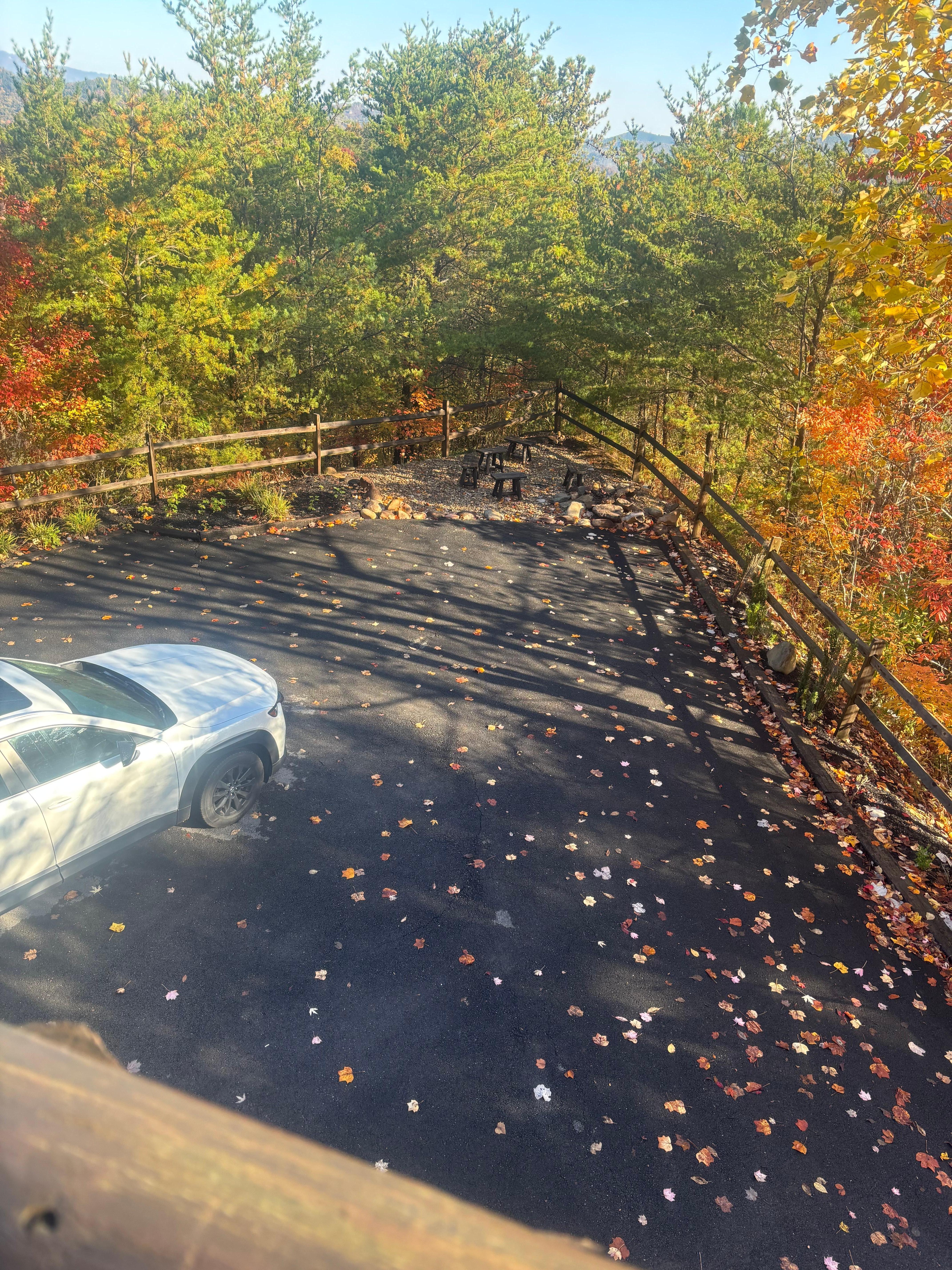 You'll also have a private fire pit area with seating, located in the front of the cabin, off the ample parking area.