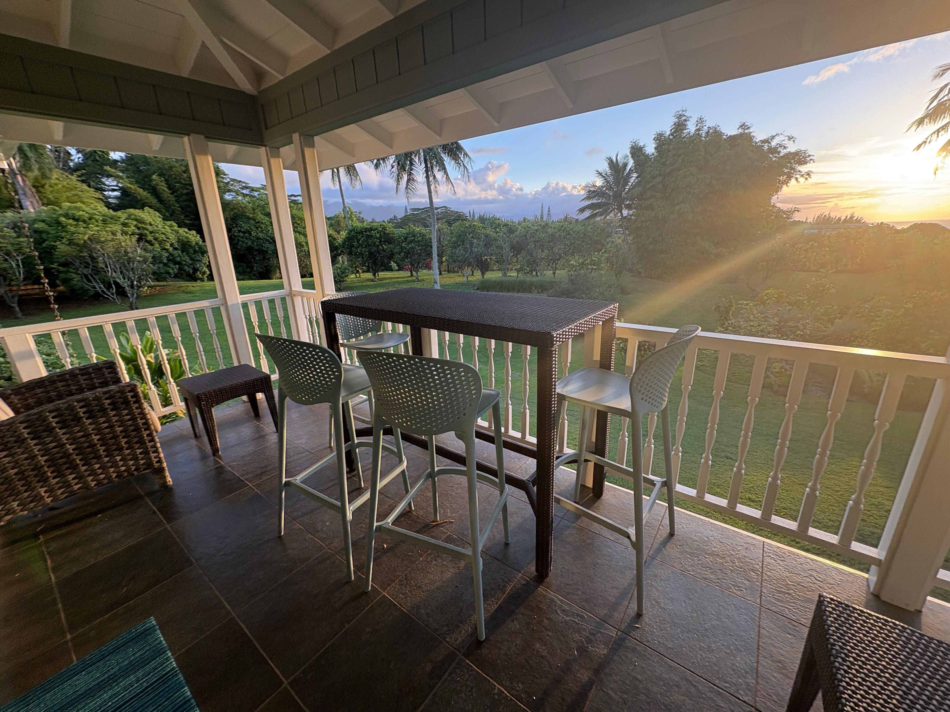 3 Bedroom home- 2 king master bedrooms with attached full bathrooms. One smaller sized room with a full size bed. A third full bathroom is directly outside the small bedroom.. This home has a large open kitchen/living/dining area, which is great for family gatherings as well as an attached rear Lanai (porch) with panoramic ocean and garden views. The home is fully appointed with a well stocked kitchen, High Quality linens, and comfortable island style furnishings. Amenities include high speed wireless, HD cable TV, phone with free long distance throughout North America (now also Canada and Mexico), Bose docking stereo, kids toys and books, Brand new Air Conditioning throughout, and much more (full list below) This home was completely updated in the beginning of 2022 so has all new furniture, fresh paint job, and concrete front patio with outdoor furniture and grill. We also provide coolers and beach chairs.