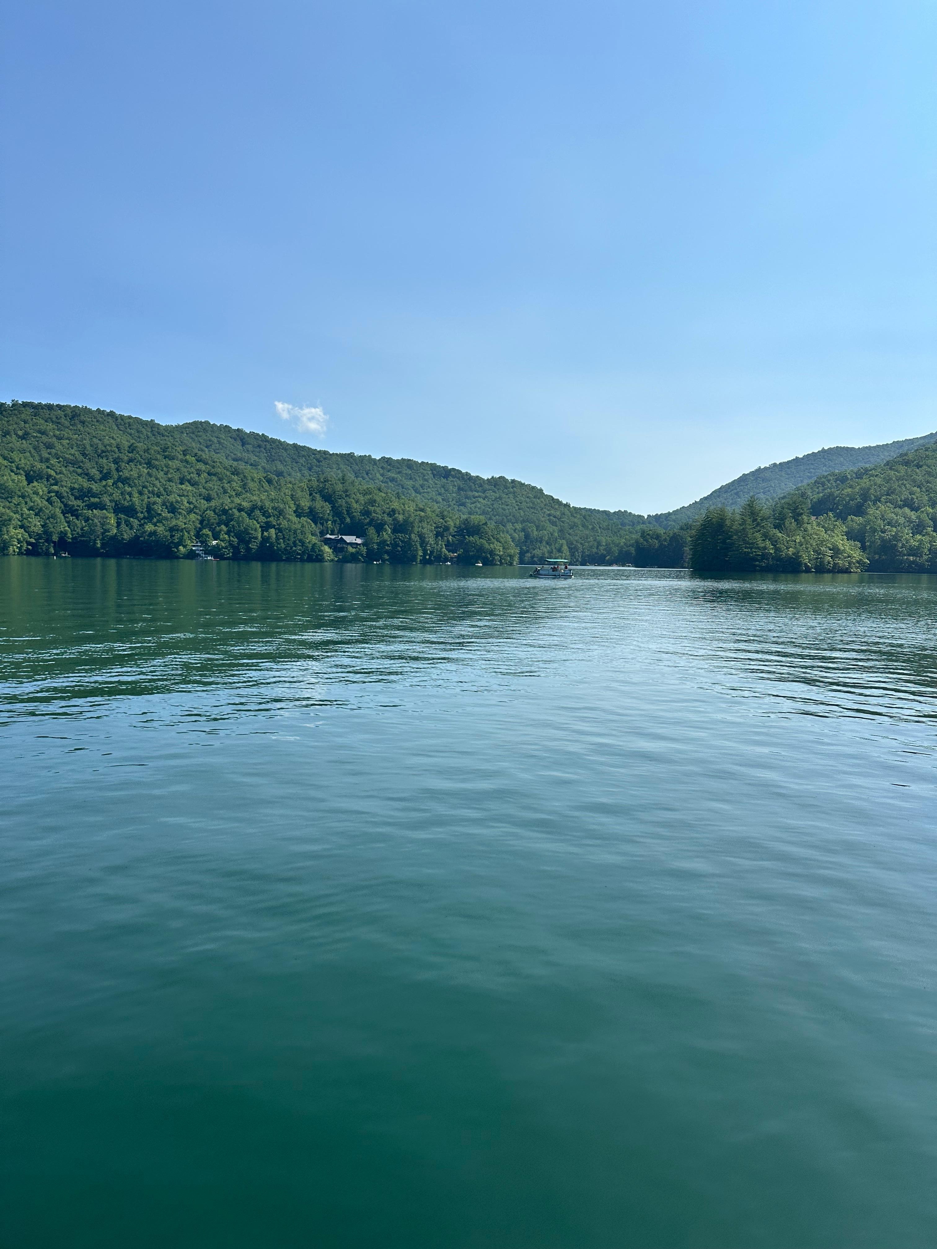This is a well-appointed, luxurious, beautifully decorated cabin with a great view of Lake Nantahala. We enjoyed the gorgeous master suite and bath, kids enjoyed upstairs rooms. Patio, porch/deck, picnic table, fire pit area were all wonderful, plenty of wood provided. Kayaks were really fun, hobie boat listed was not available for use, life jackets listed were not there. Walk down to the lake and dock was quite steep and farther than anticipated, you have to cross a highway and keep walking. But we had great fun fishing off the dock. Kitchen could use a restock - foil, saran wrap, can opener, etc. would have been helpful. Interior is beautiful with luxury finishes, soaking tub, candles, really thoughtful. Overall a wonderful stay!