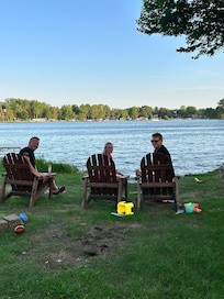 Private walk-in beach w/ pier. Built in fire pit to enjoy the evenings.