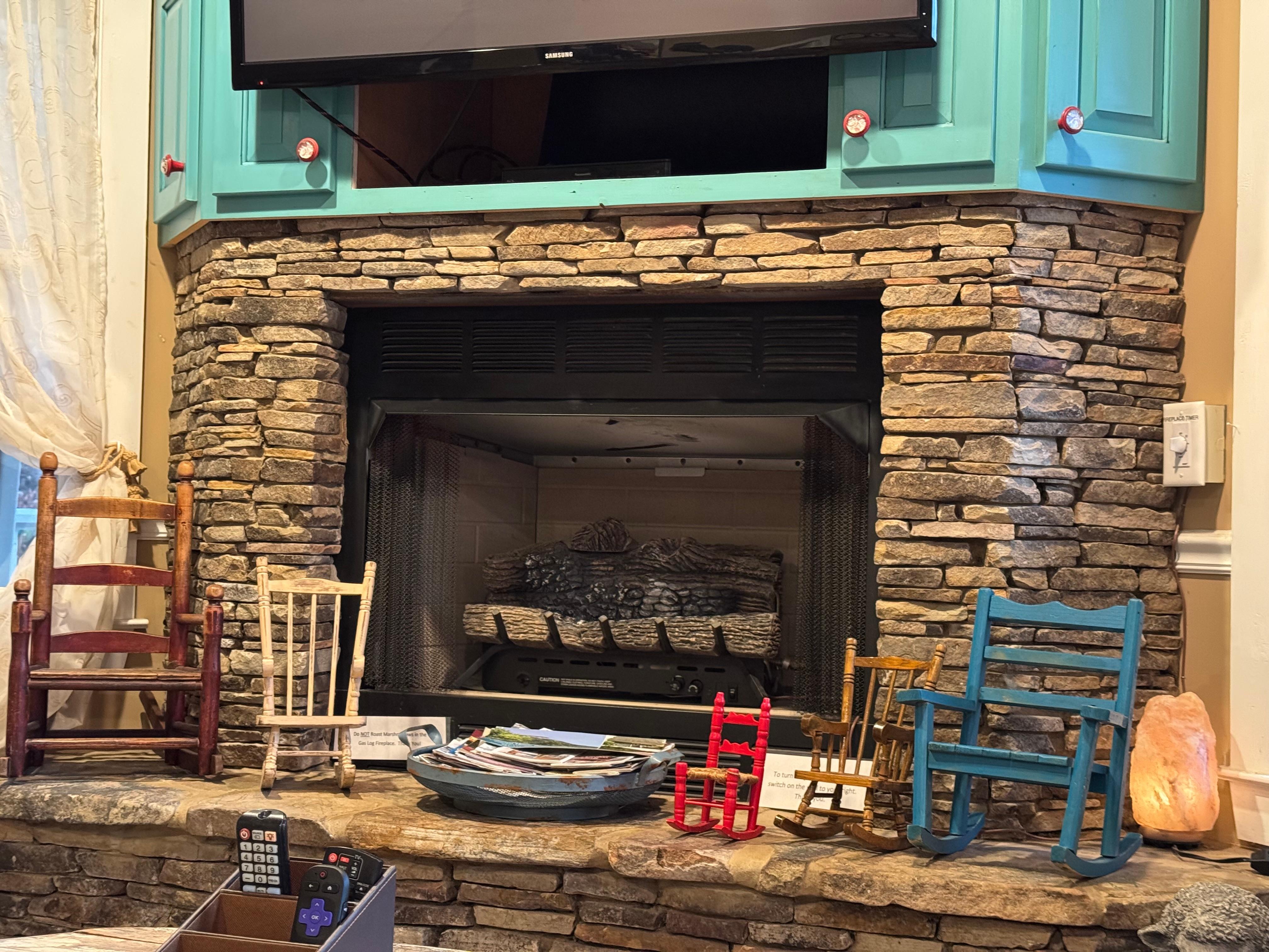 Each area has it's own unique theme and personality. The main floor has a fully equipped farmhouse style eat-in kitchen, a den with a gas fireplace, 2 bedrooms, a full bath, a dining room, laundry room, and a large living room with a wood burning fireplace for chilly nights.