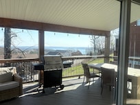 The large deck overlooks the Ozark Mountains and Table Rock Lake. You can cook dinner on the gas grill or simply relax and roast marshmallows on the fire table. The deck is the perfect spot to enjoy fireworks from the Chateau on the Lake Hotel.