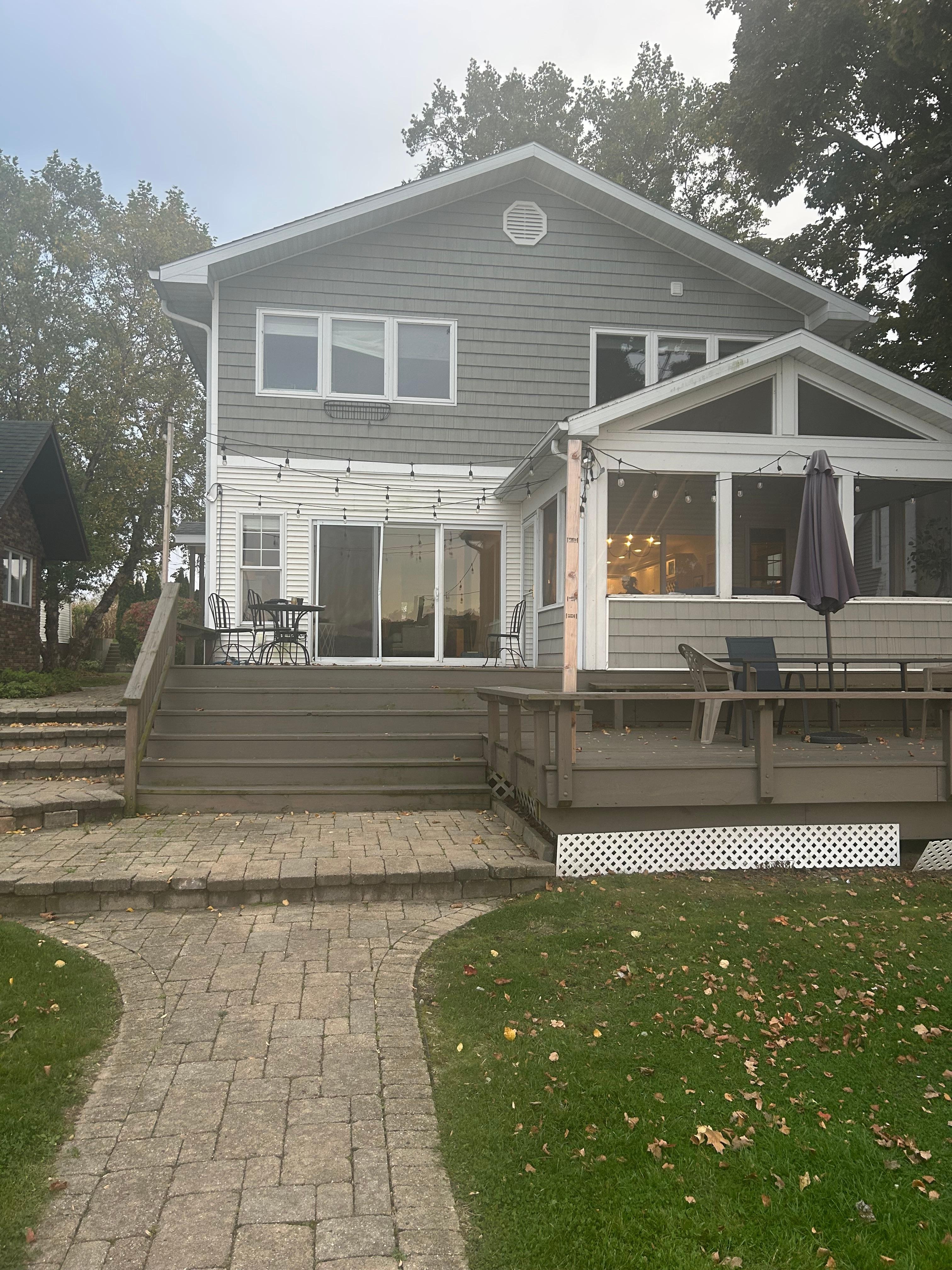 This 5 Bedroom, 5 Bathroom home can comfortably sleep 15. Enjoy 2 family rooms, a beautiful kitchen, and the convince of a laundry room. Relax in the screened in porch, or the front deck, or even the firepit zone, all bestowing beautiful views of the lake. This property includes ample parking, yard space, a pier, a swim area, and a place to doc your boat.