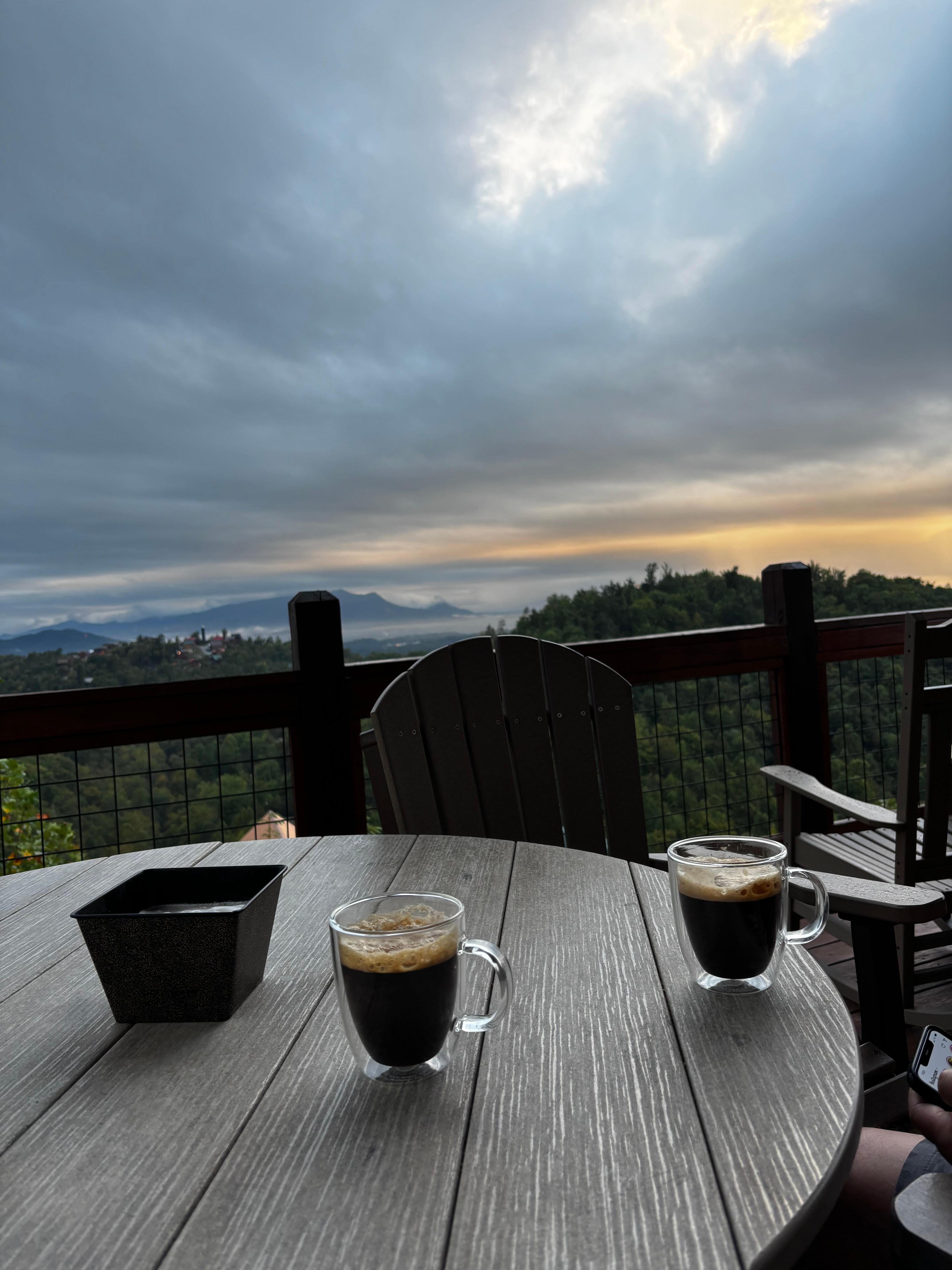 If you've spent the day hiking, outlet shopping, or at Dollywood, you will love the peace and quiet that awaits in Absolute High. Once you enter the cabin, you will be surrounded by the beautiful views from the wall of glass overlooking the mountains. Outside, the deck has various seating and hot tub. The hot tub (drained and sanitized after each guest) is located steps from the French doors. What a great place to sip your morning coffee or evening cocktail, to see the sunset over the mountains, or to view the Dollywood fireworks on summer nights.