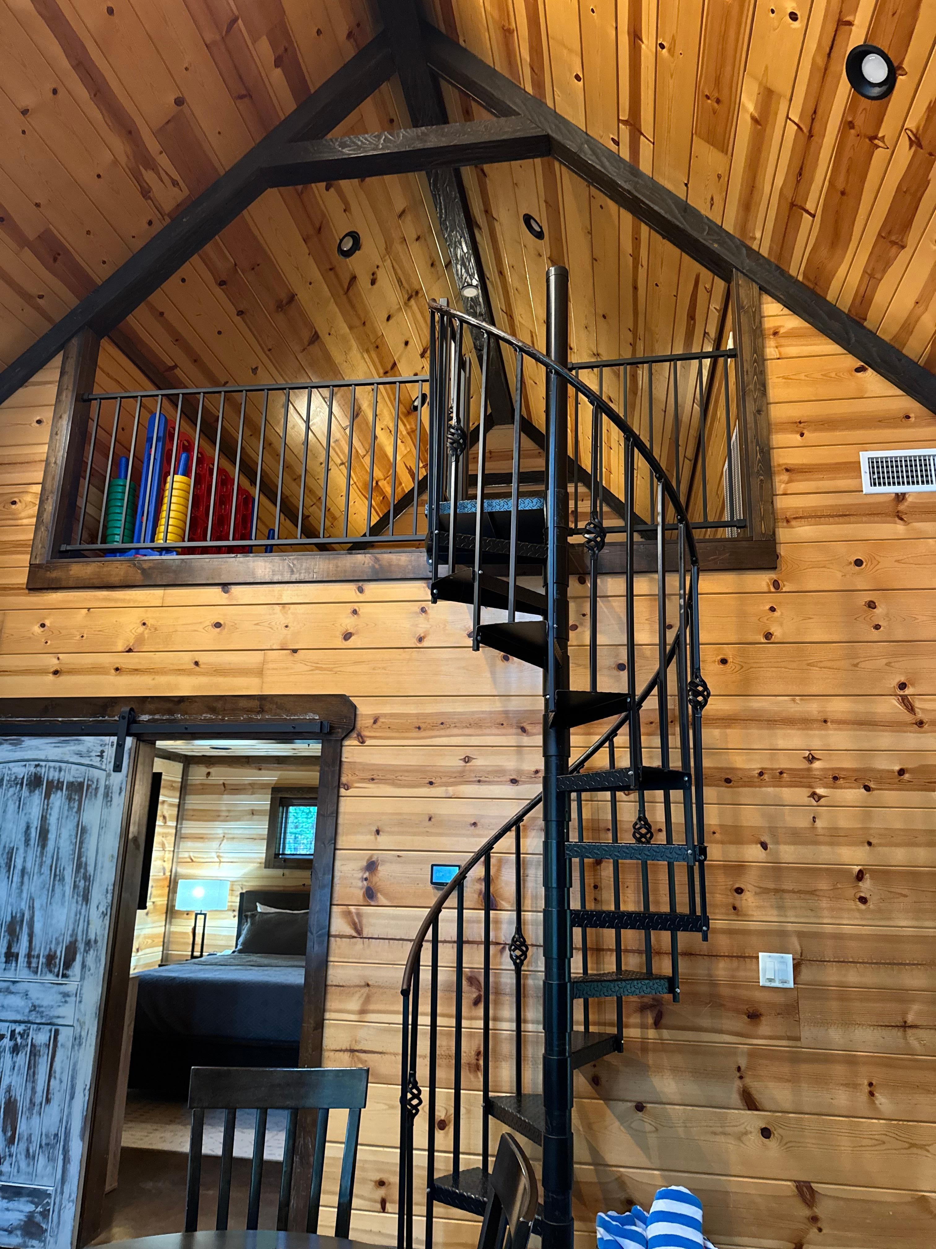At the top of the spiral staircase is the Loft. The loft contains two twin sized beds that are perfect for kids or adults.