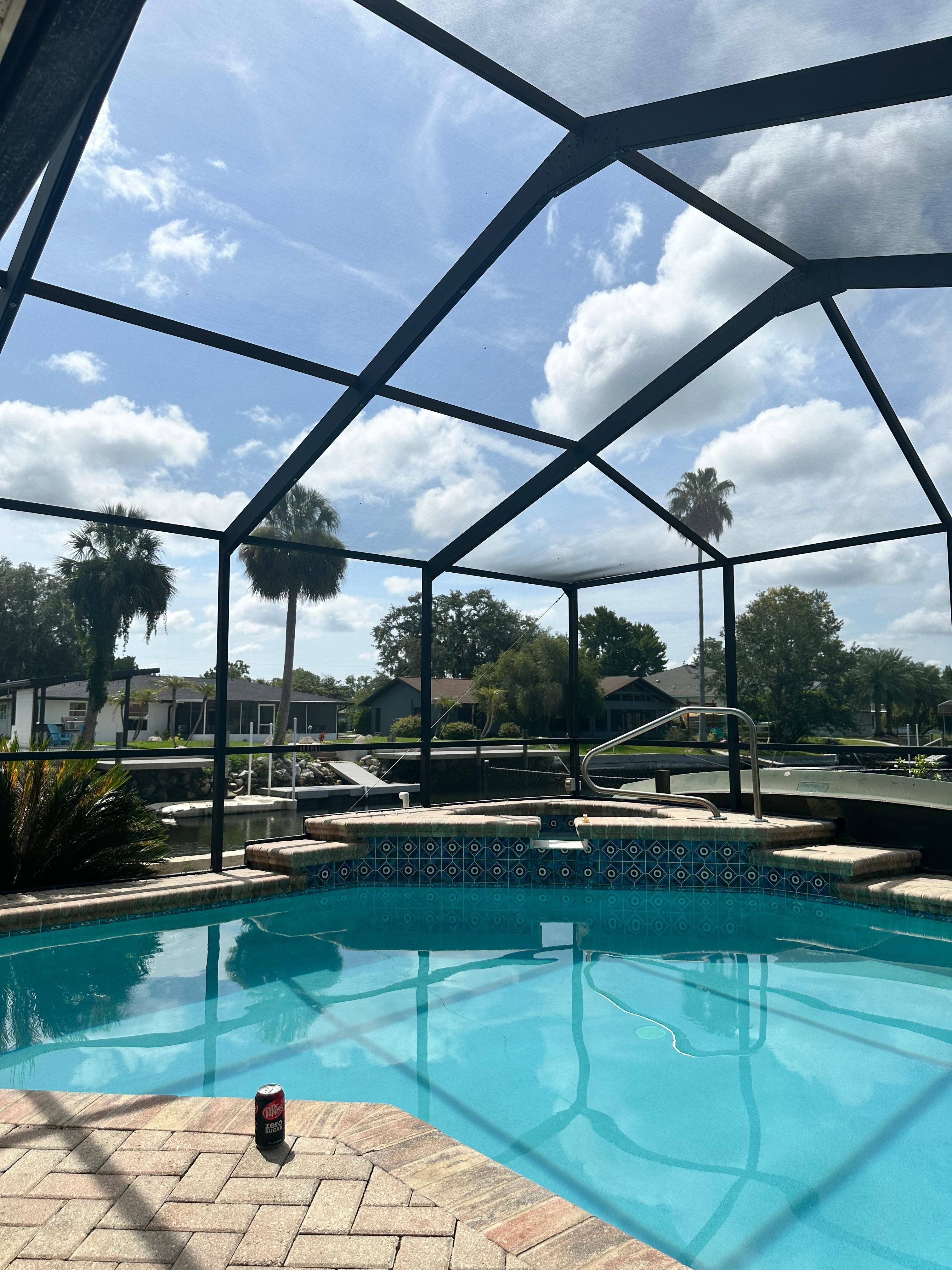 The screened in sunroom/Lanai has a large flat screen smart TV that overlooks the pool, water and floating dock. Perfect for hanging out at the pool after a long day on the water. The back and side yards are fenced in perfect for watching children play or fish. There is a large 2 car garage and plenty of storage area. There is room in the driveway for two vehicles & a boat trailer. No parking in garage, grass or street areas.