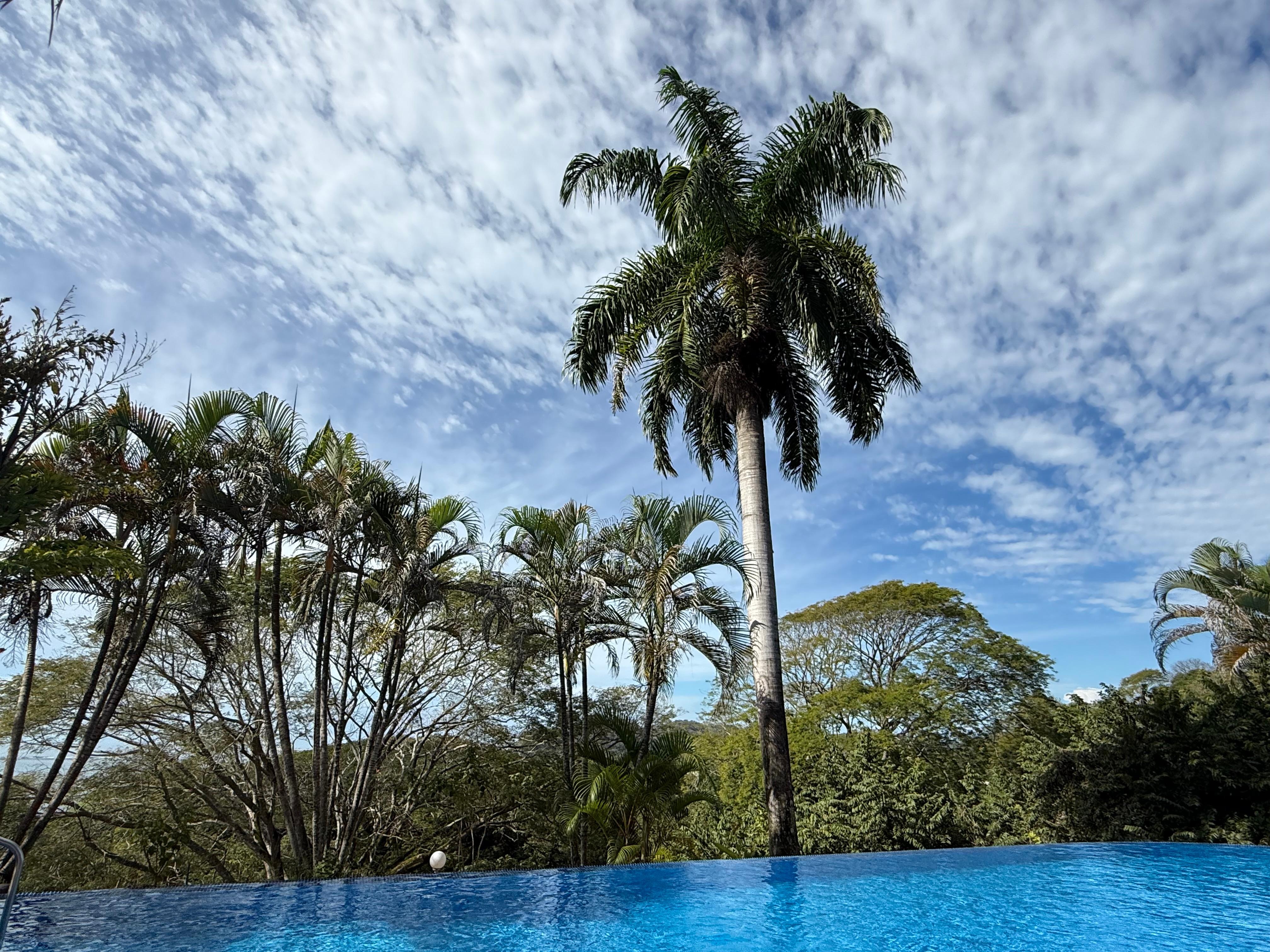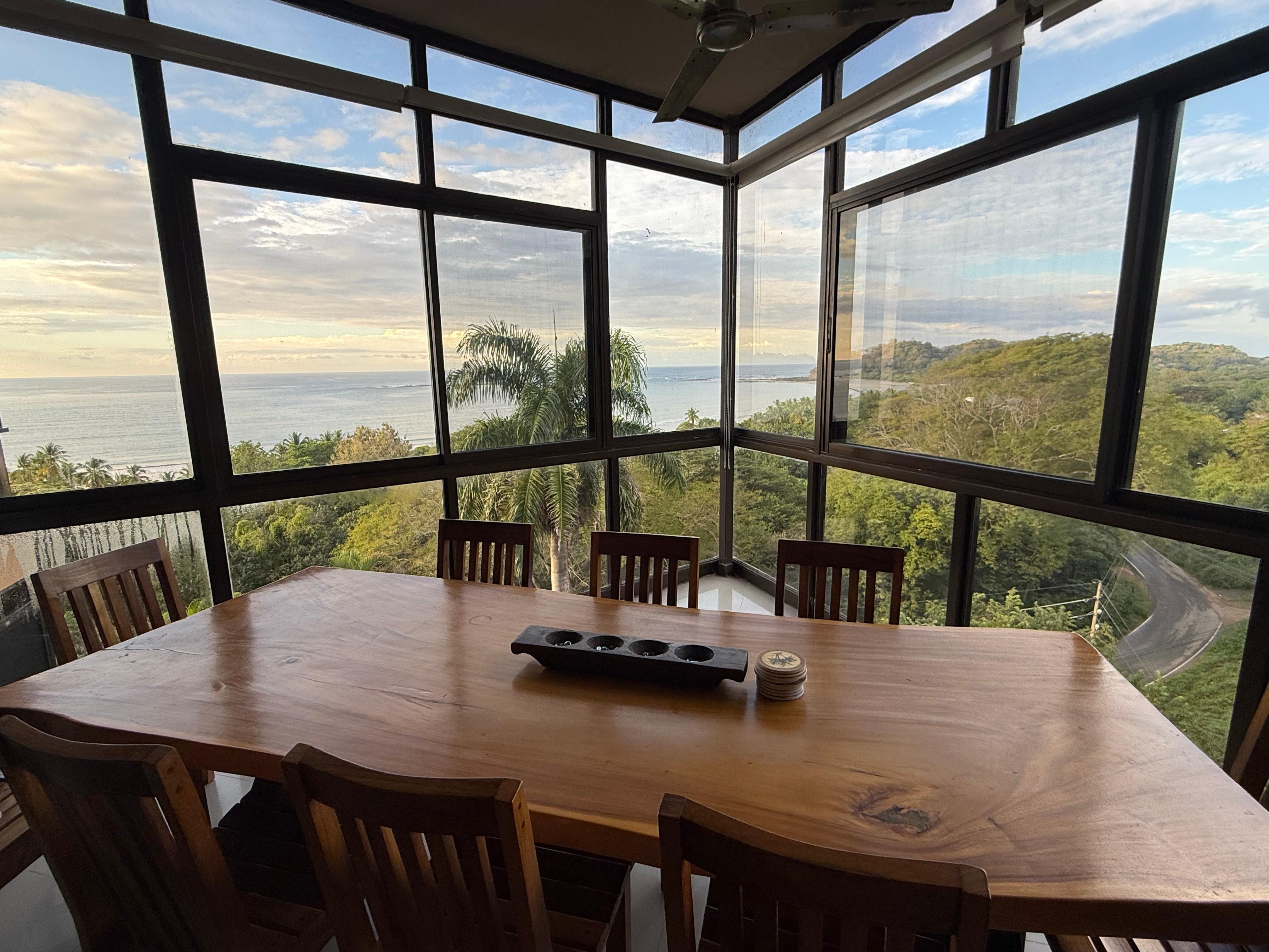 Both the incredibly large main bedroom suite and the main living space boast floor-to-ceiling panoramic ocean views across Samara beach and beyond. Three additional bedrooms provide adequate space to accommodate large family gatherings, multiple families vacationing together, or 4 couples travelling together. A pull out couch in the living room allows for overflow to accommodate up to ten guests in all. Two bedrooms include en-suite bathrooms, with the other two bedrooms sharing a large bathroom right outside their door. An added guest bathroom is situated downstairs off the living room.