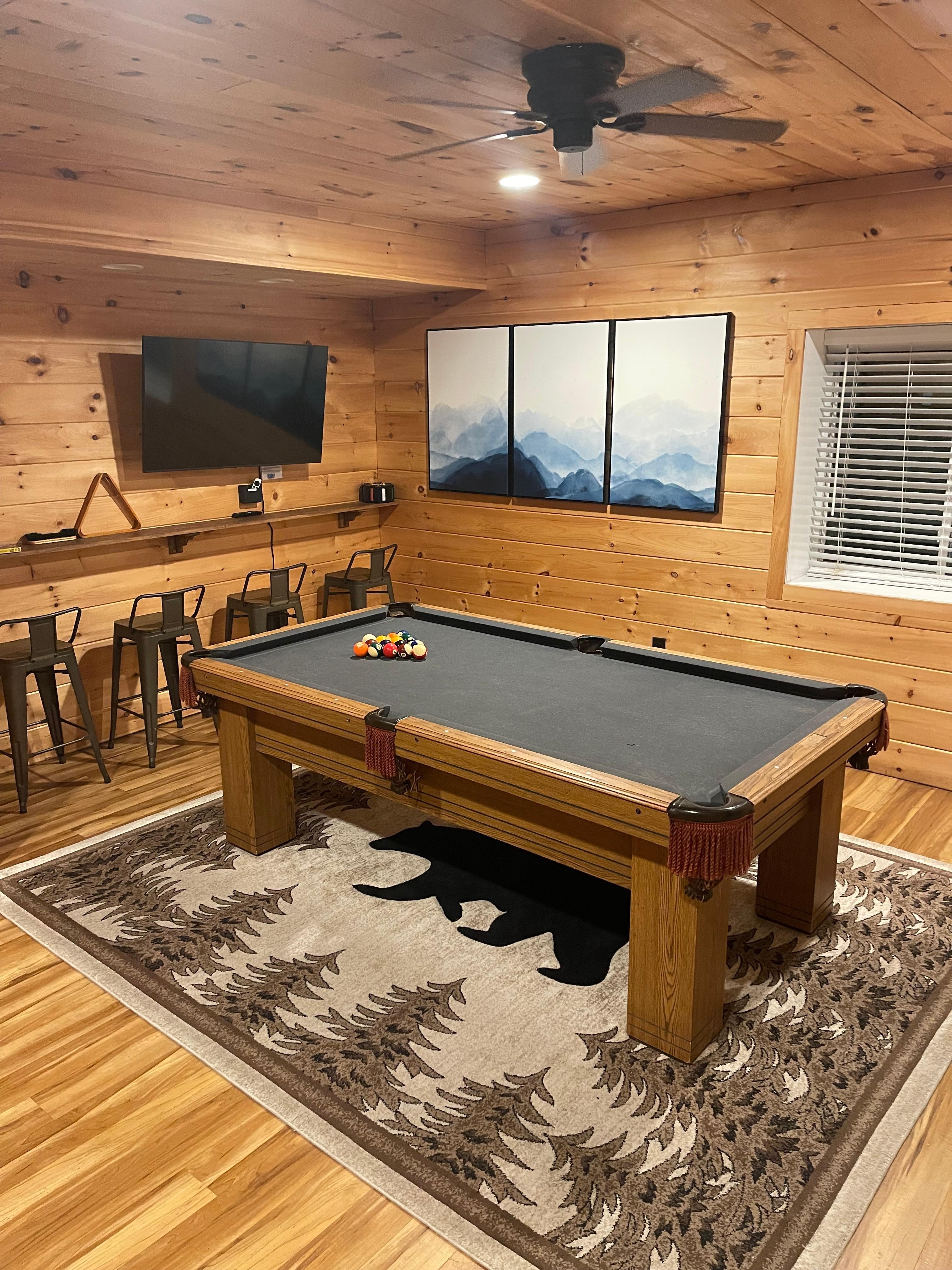 You never need to leave the chalet to enjoy your vacation with an excellent recreation room and two private decks to enjoy! There is a classic pool table and arcade game, board games, and 50” HD TVs!