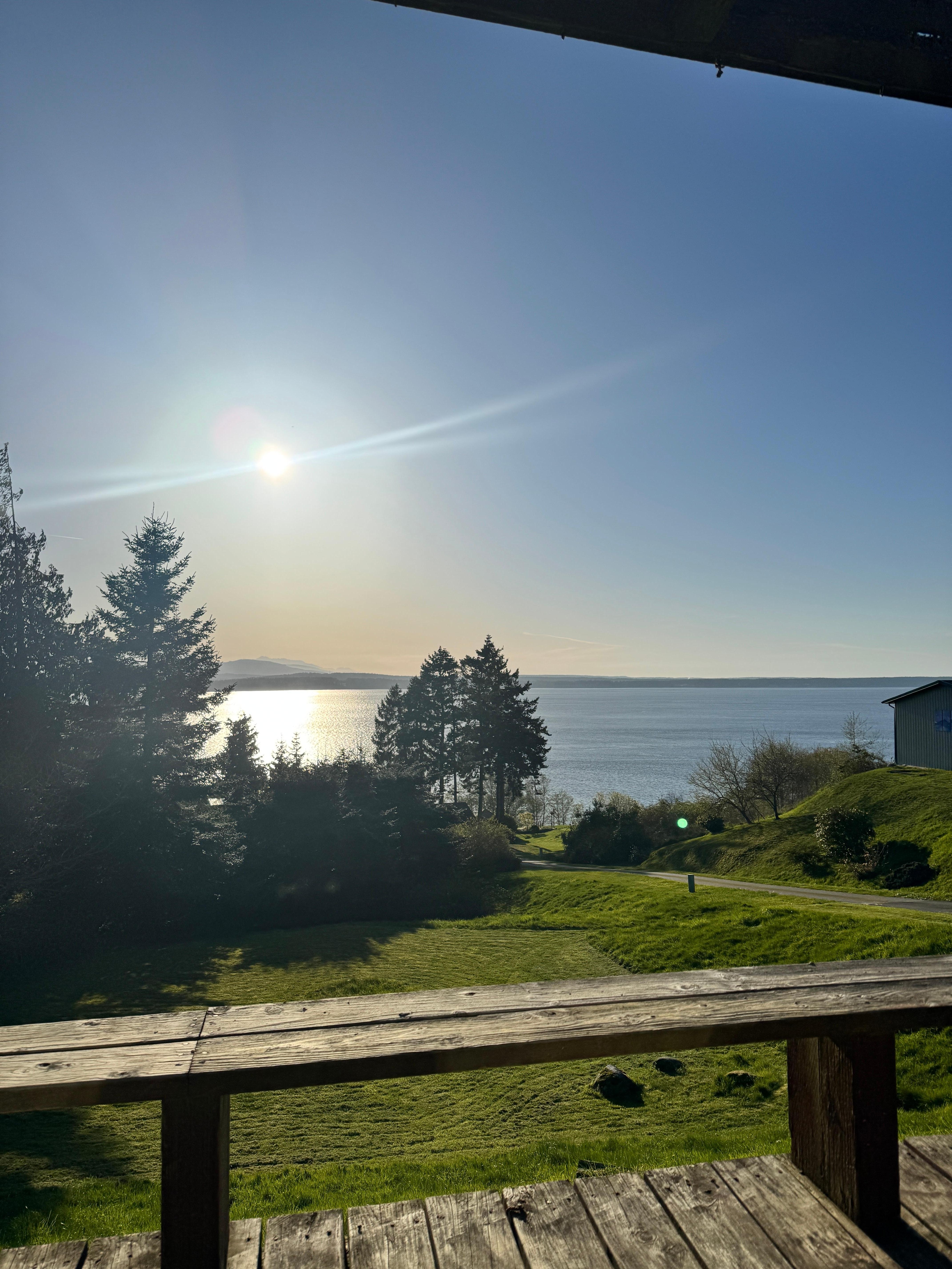The South West side of Whidbey Island is very charming, beautiful, rural, and not that far from Seattle. There is a strong community presence and quite a strong artistic pulse, which we thoroughly enjoy. We chose our location 'up' from the water, because being right on the water can be windy and cold, even in the summer! We also enjoy the privacy, and that's hard to find living on the waterfront. Too many other houses!