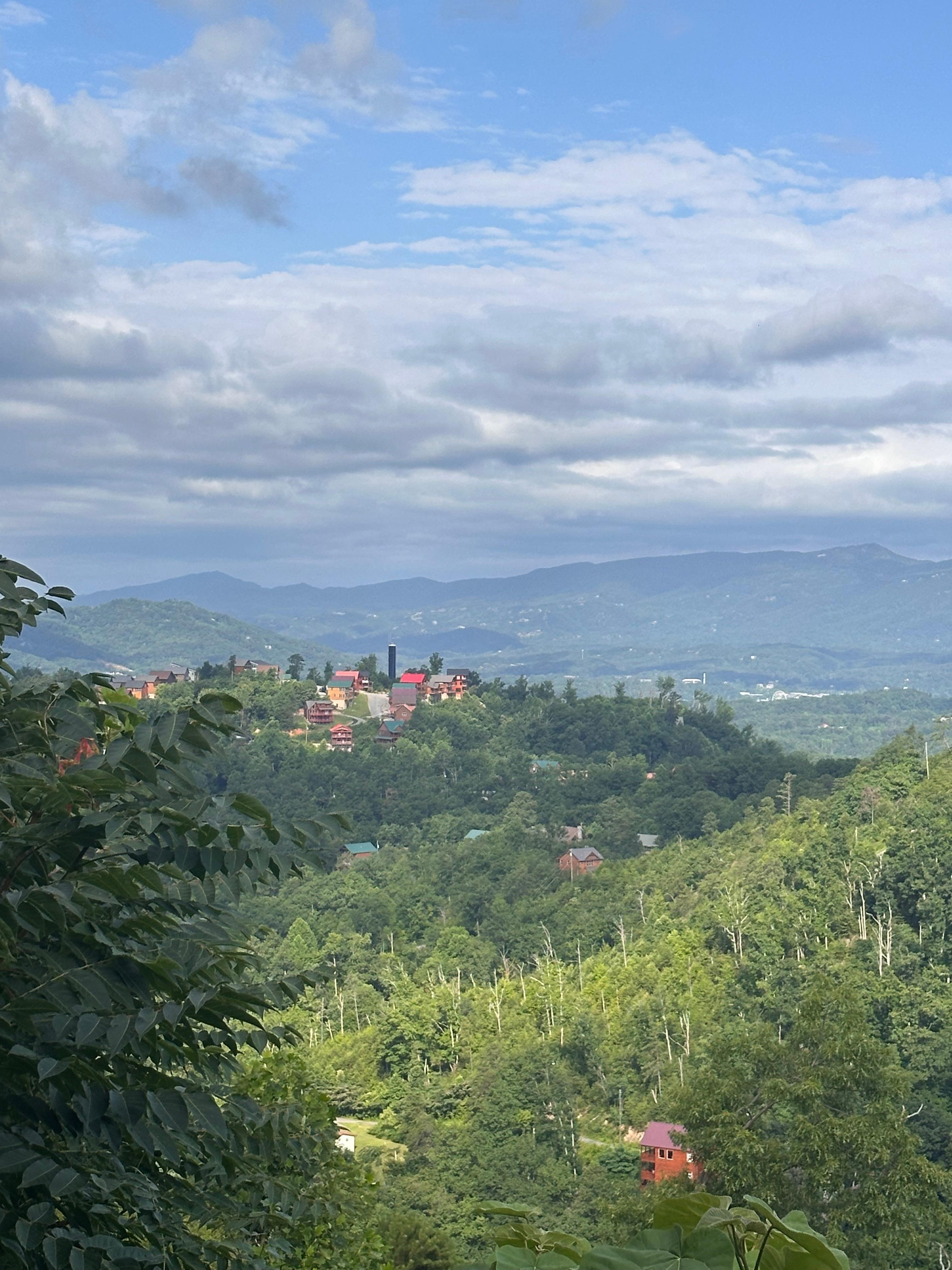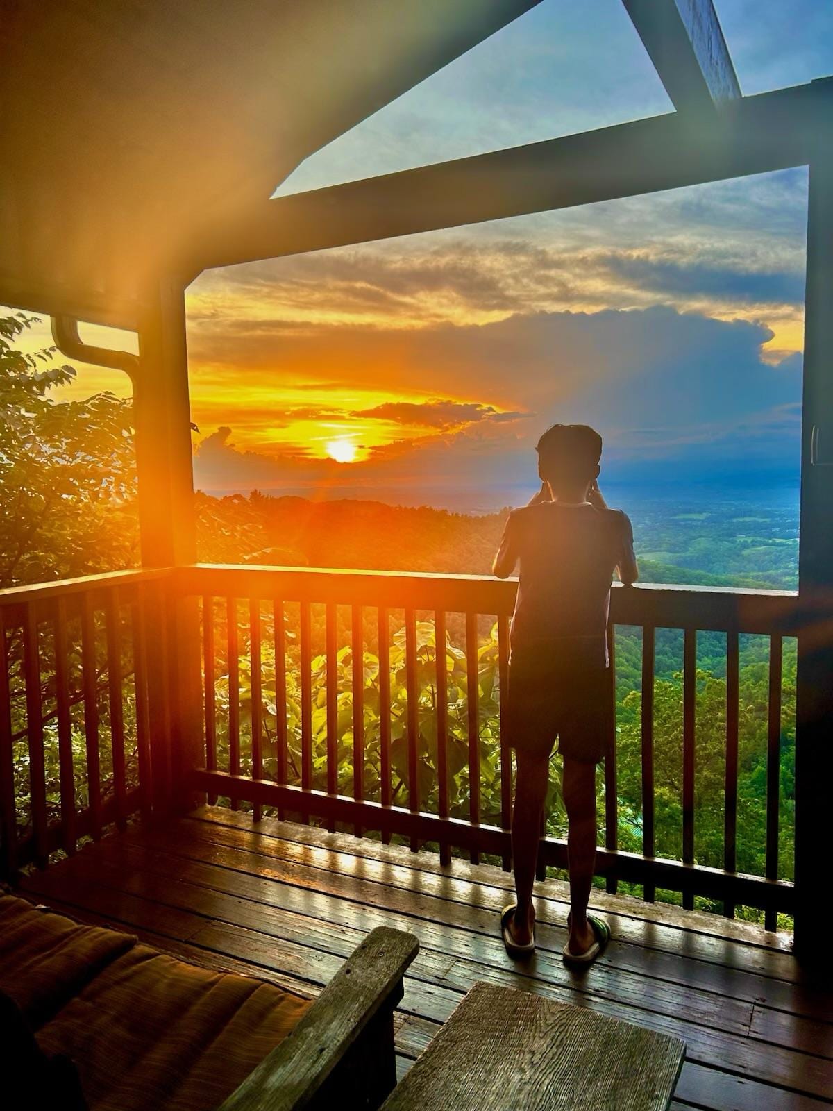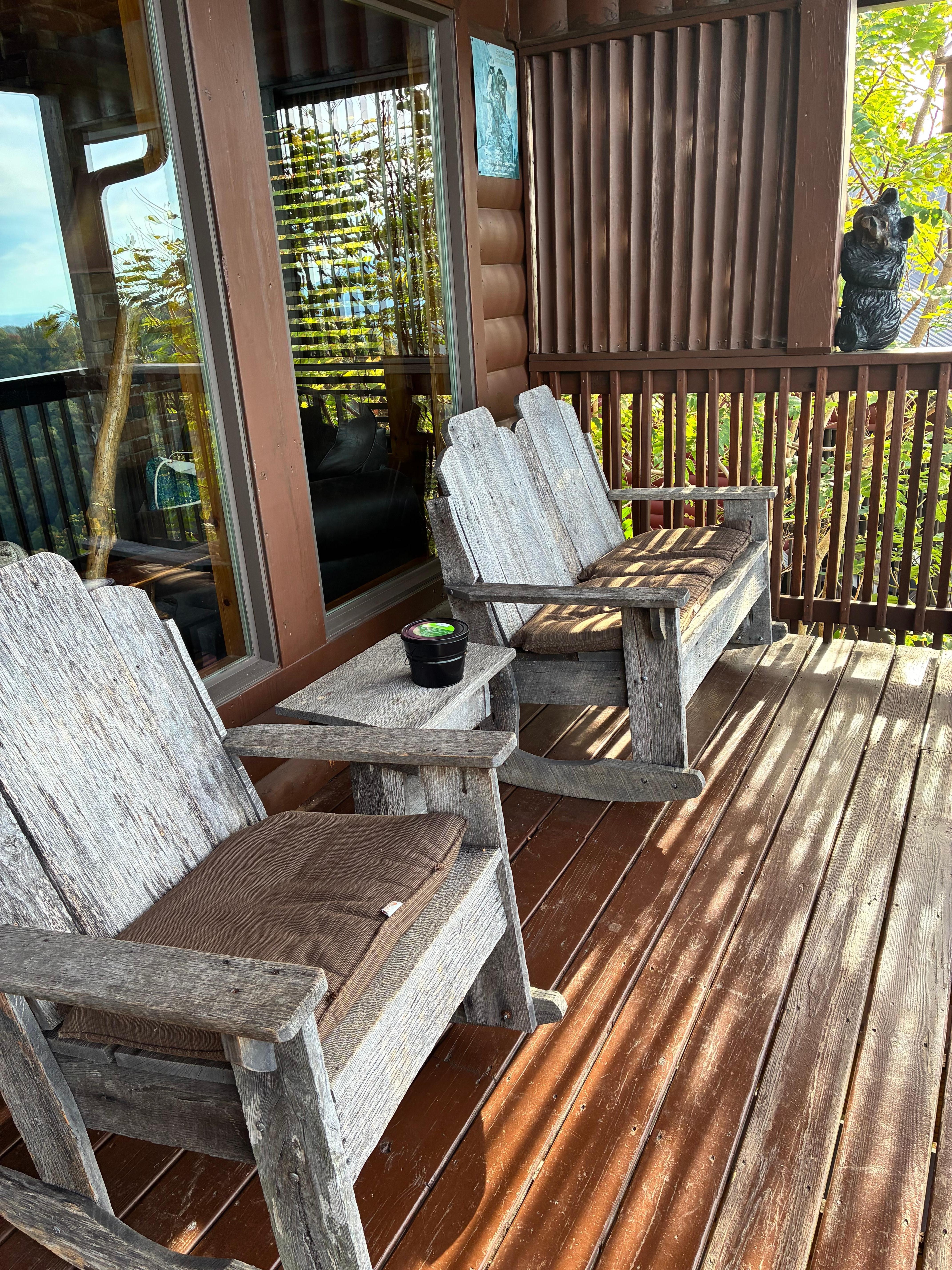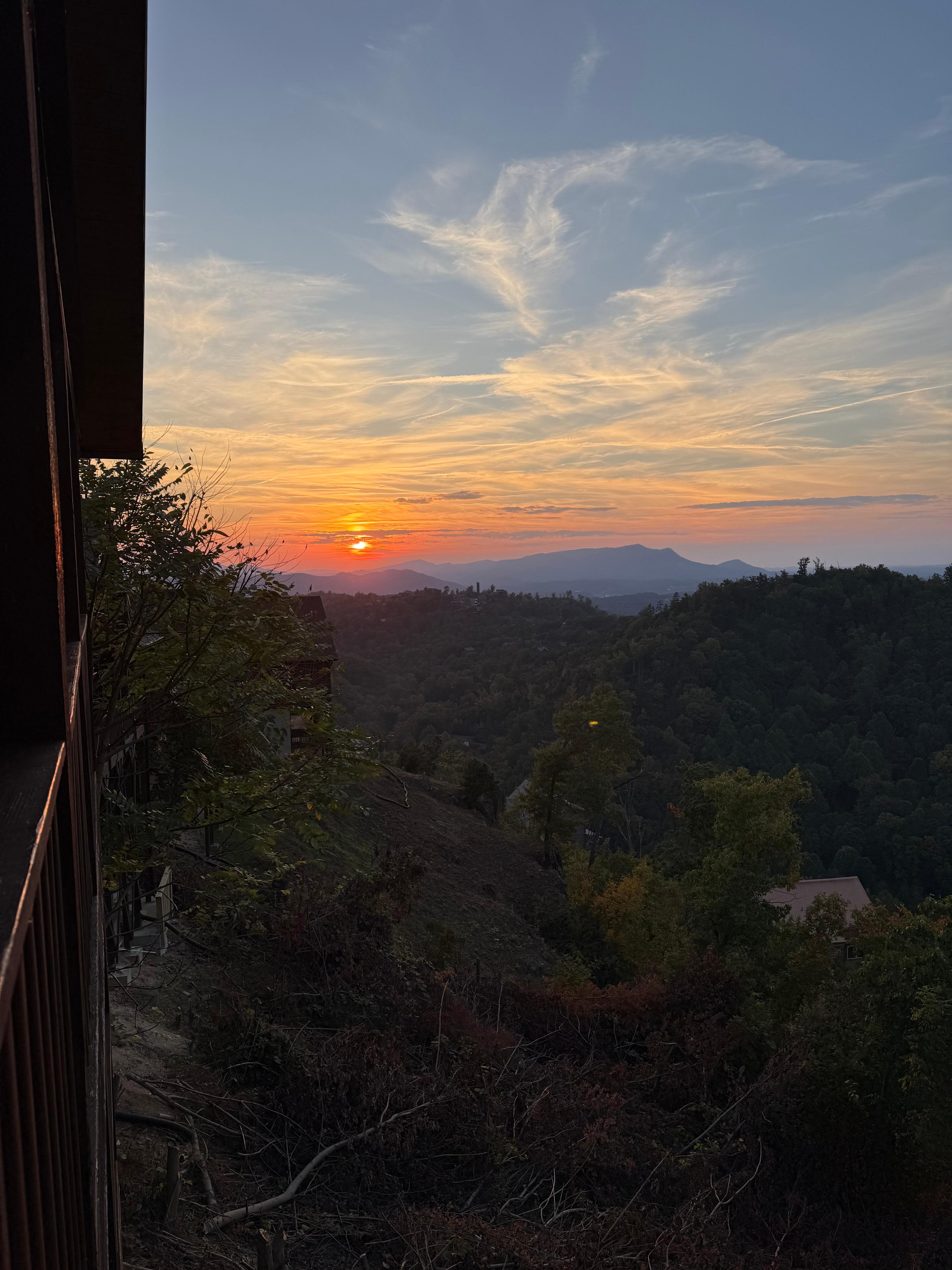 Heavenly Heights is a new cabin rebuilt in 2019 with 180-degree views that are simply heavenly! Enjoy a spectacular sunset overlooking Bluff Mountain, view of the nighttime lights of Sevierville, and even The Island ferris wheel from the comfort of our rocking chairs or 6-person jacuzzi! Don’t forget to check out the Dollywood Fireworks from the deck every summer night and listen to the famous Dollywood train whistle in the distance during the day!