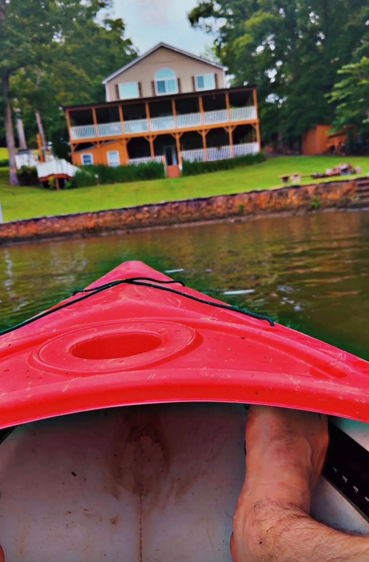 The home has a large kitchen and plenty of seating areas for you to eat. There is outdoor dining areas on both porches as well as a dining area inside with a view of the lake.