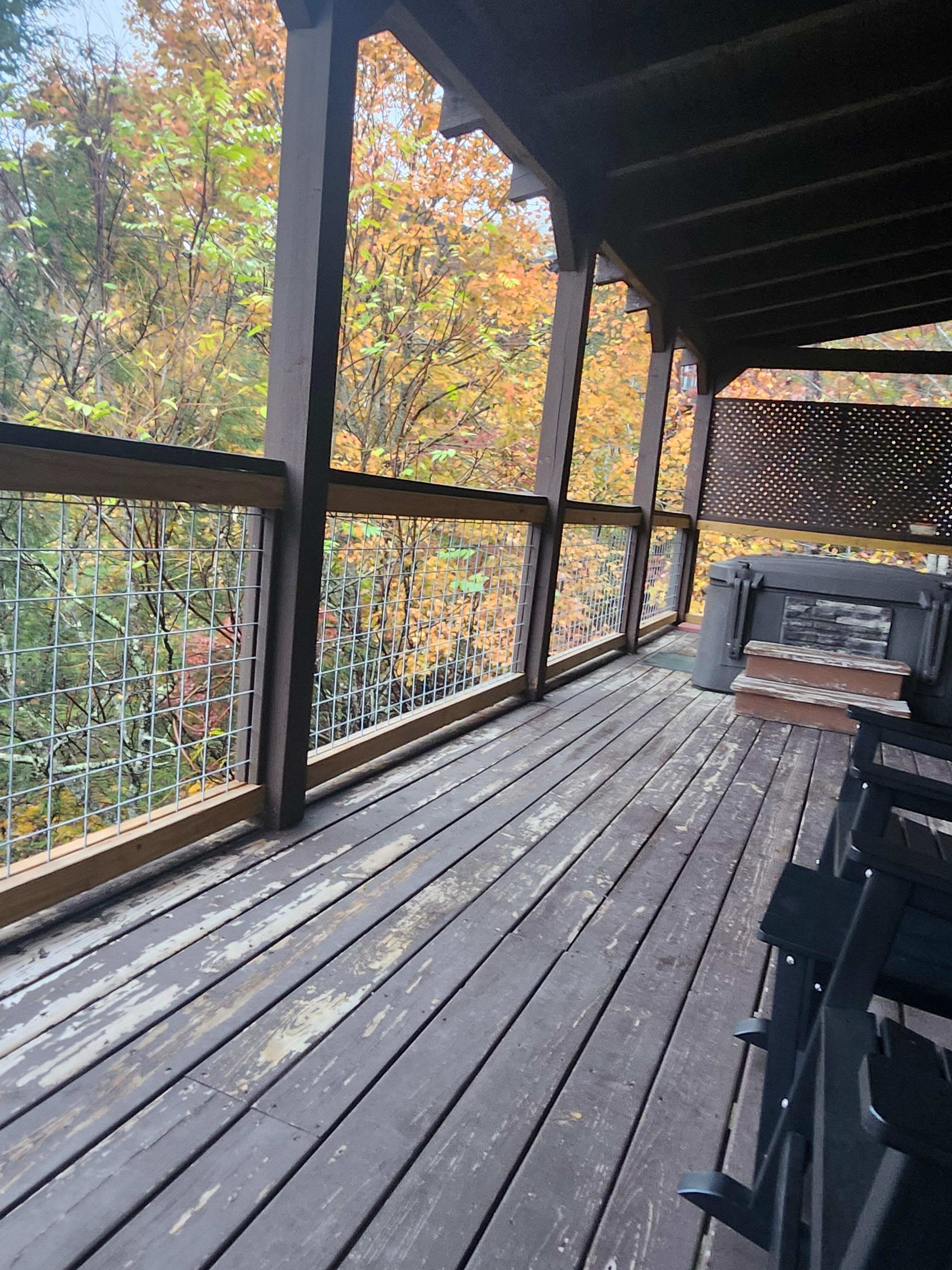 Breathtaking views, rocking chairs, private hot tub, outdoor grill, spacious and furnished deck