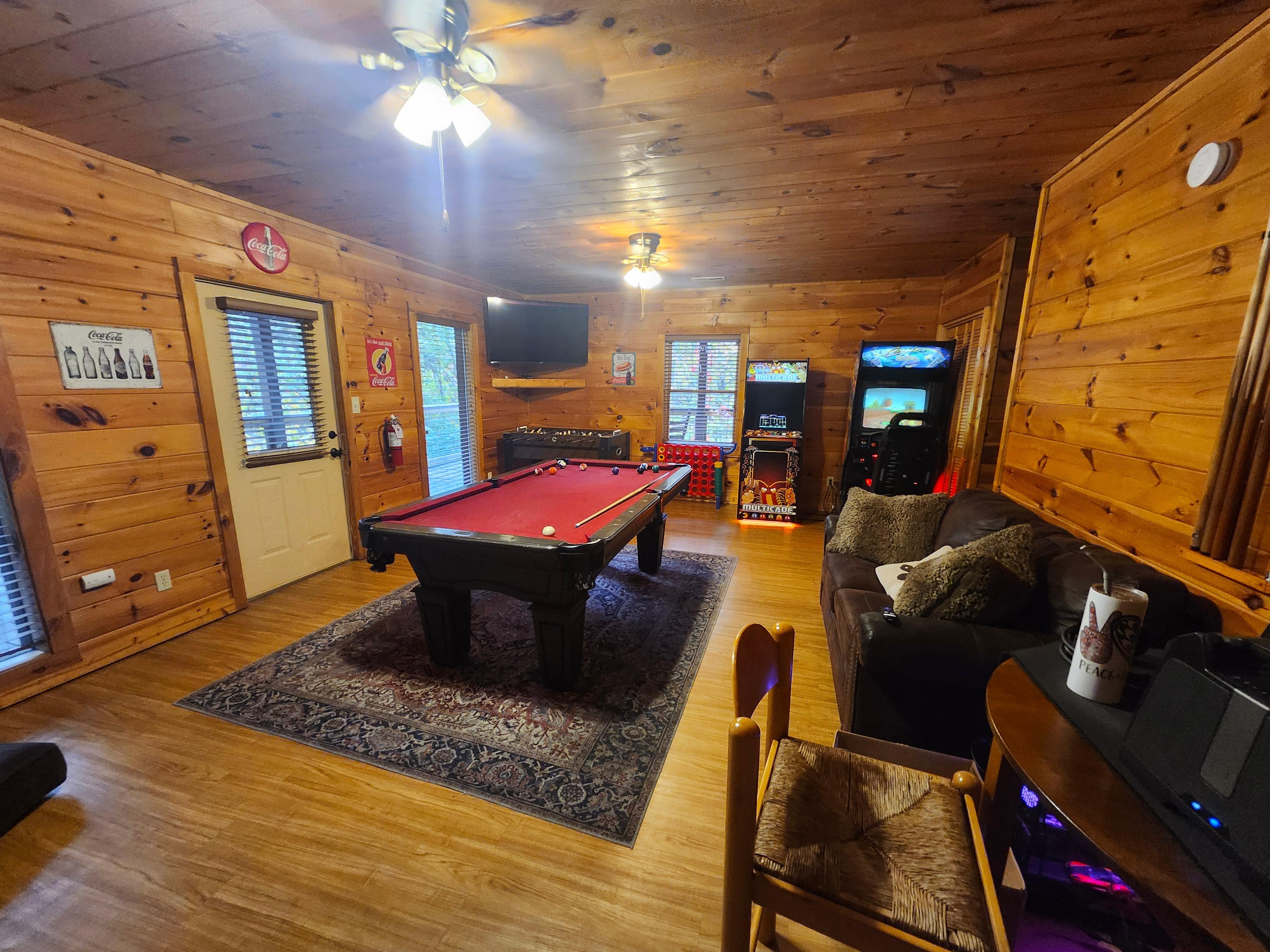 Located in the peaceful mountainside of Pigeon Forge, our cabin is perfectly situated near all the best attractions! Kick back and relax in this newly furnished and updated cabin, with plenty of living space and outdoor areas to take in the serenity. Inside, you will discovery entertainment galore, with a game room, pool table, hot tub, several arcades, foosball, and other amenities that will ensure a wonderful and memorable vacation!