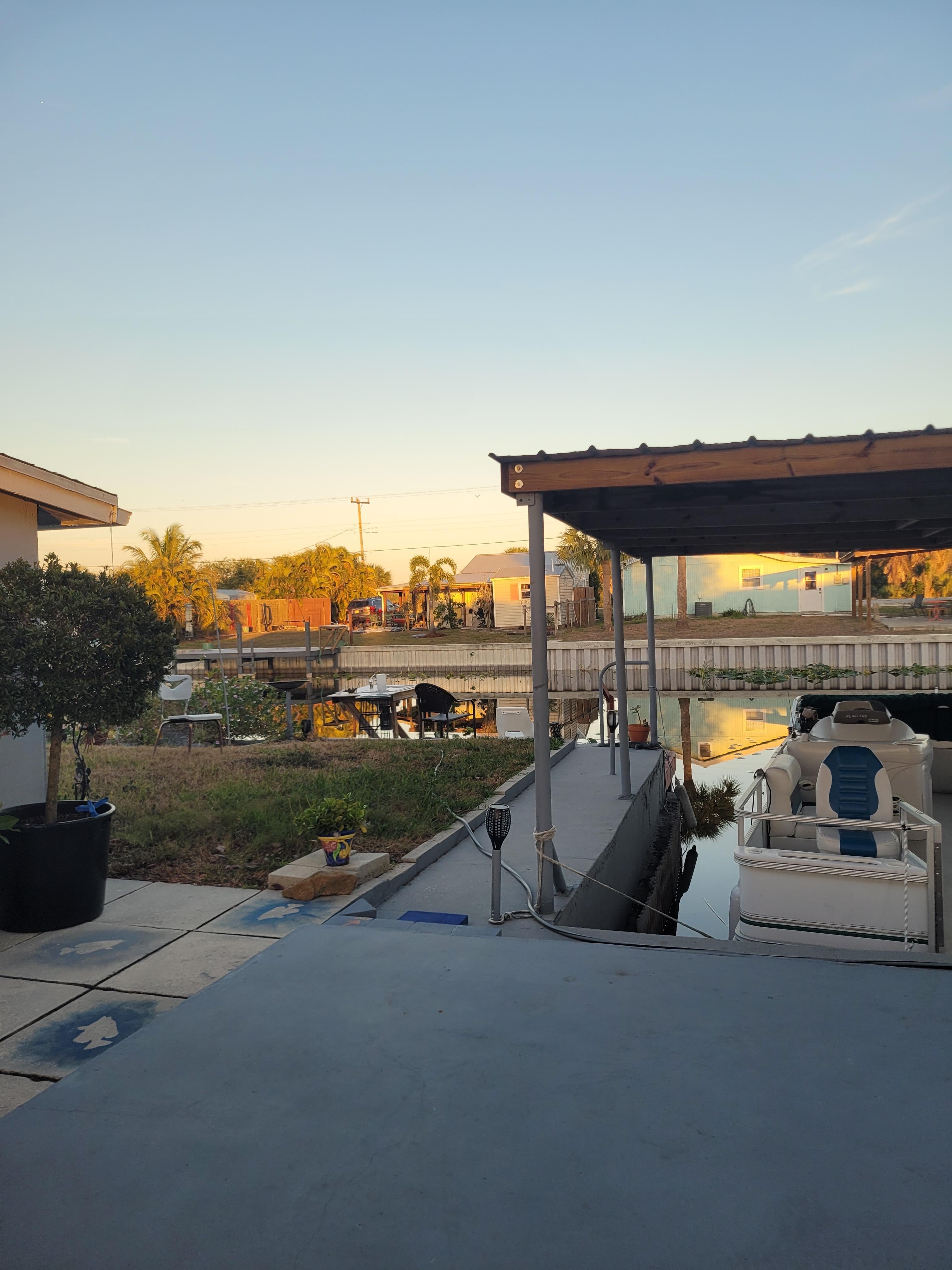 We provide the pellets/seed to feed our backyard wildlife. Meet Wesley (our daily visiting Blue Heron), Walter (our nosey Ibis), Rookie & Cookie (Coots/ducks) and Sam (oh he's fun to watch) comes out from under the water with his long neck and swallows fish in a snap. Turtles galore. Gators? I've only seen one this year cruising by...puny at only 5 feet long. We're open to taking you on a cruise around the canals and rim in our 21 ft Pontoon Boat. Depends on how long your stay is and if we're available too!